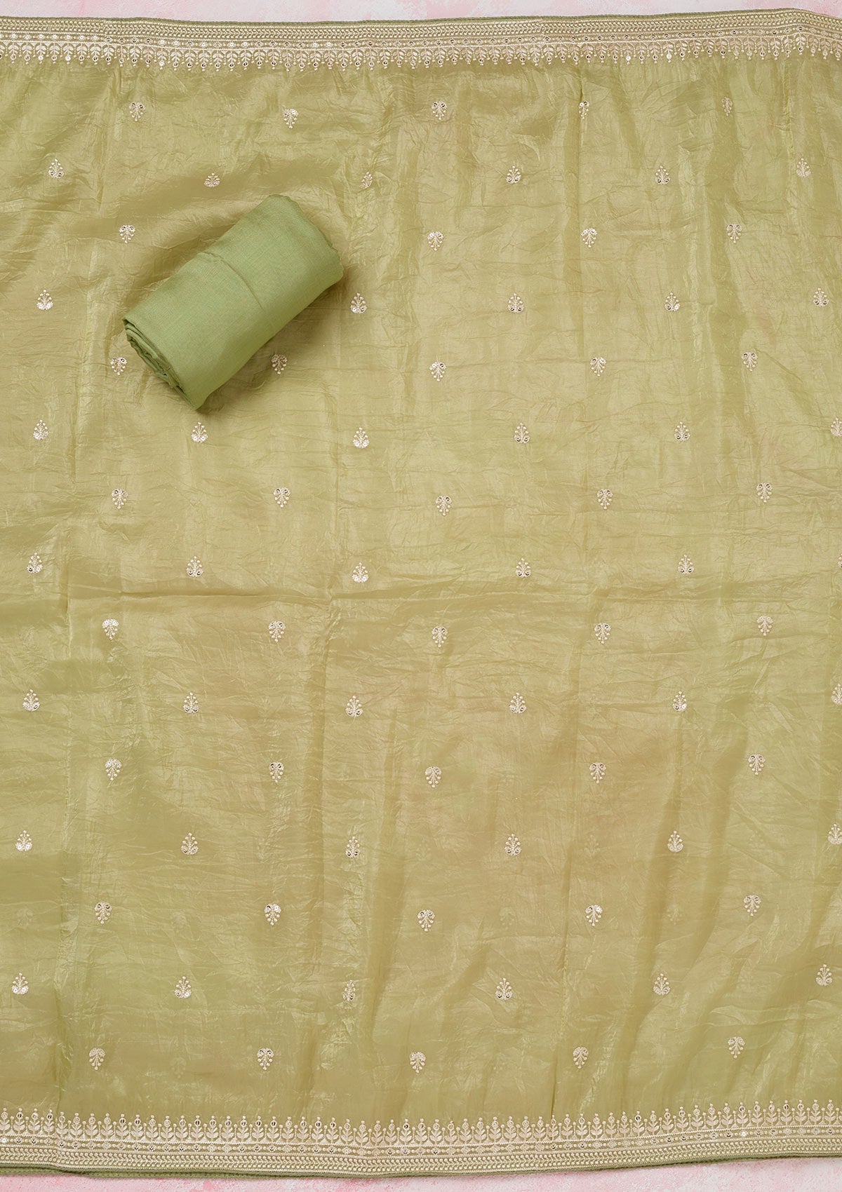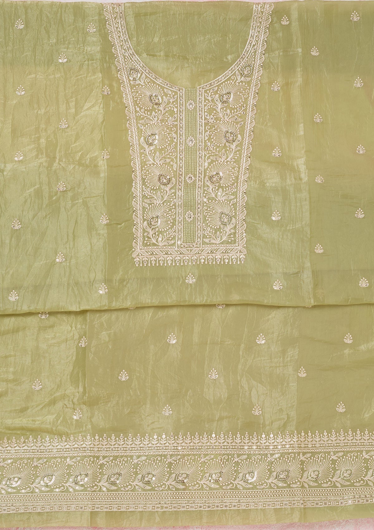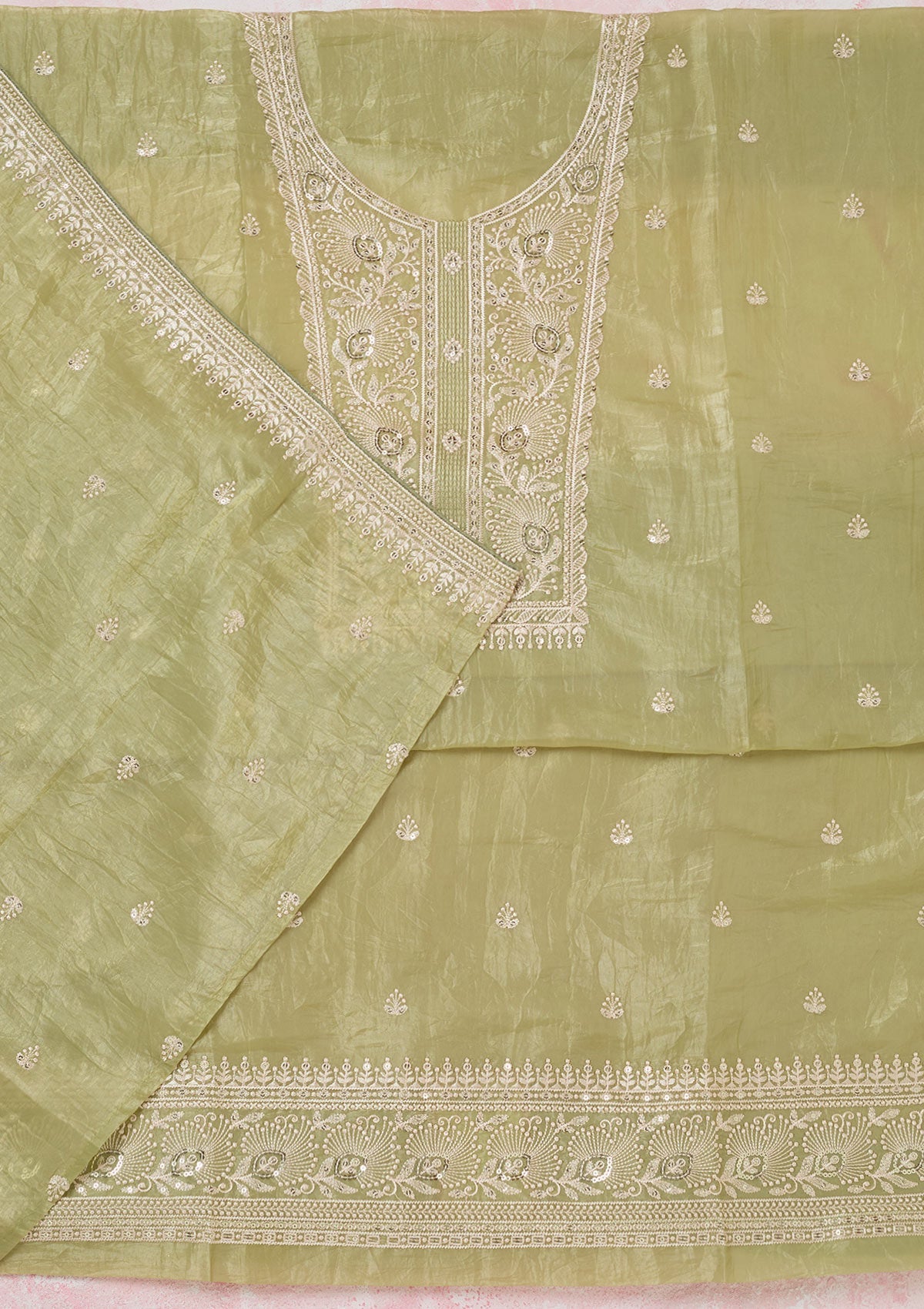Pista Green Threadwork Semi Crepe Unstitched Salwar Suit