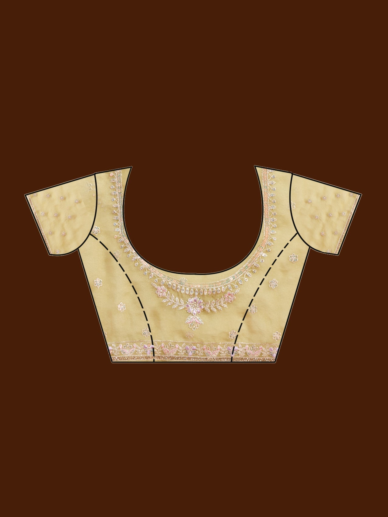 Pista Green Saree in Tissue fabric. The Saree is elevated with Threadwork embroidery. It comes with an Unstitched blouse. Comes with the Koskii promise of premium quality.