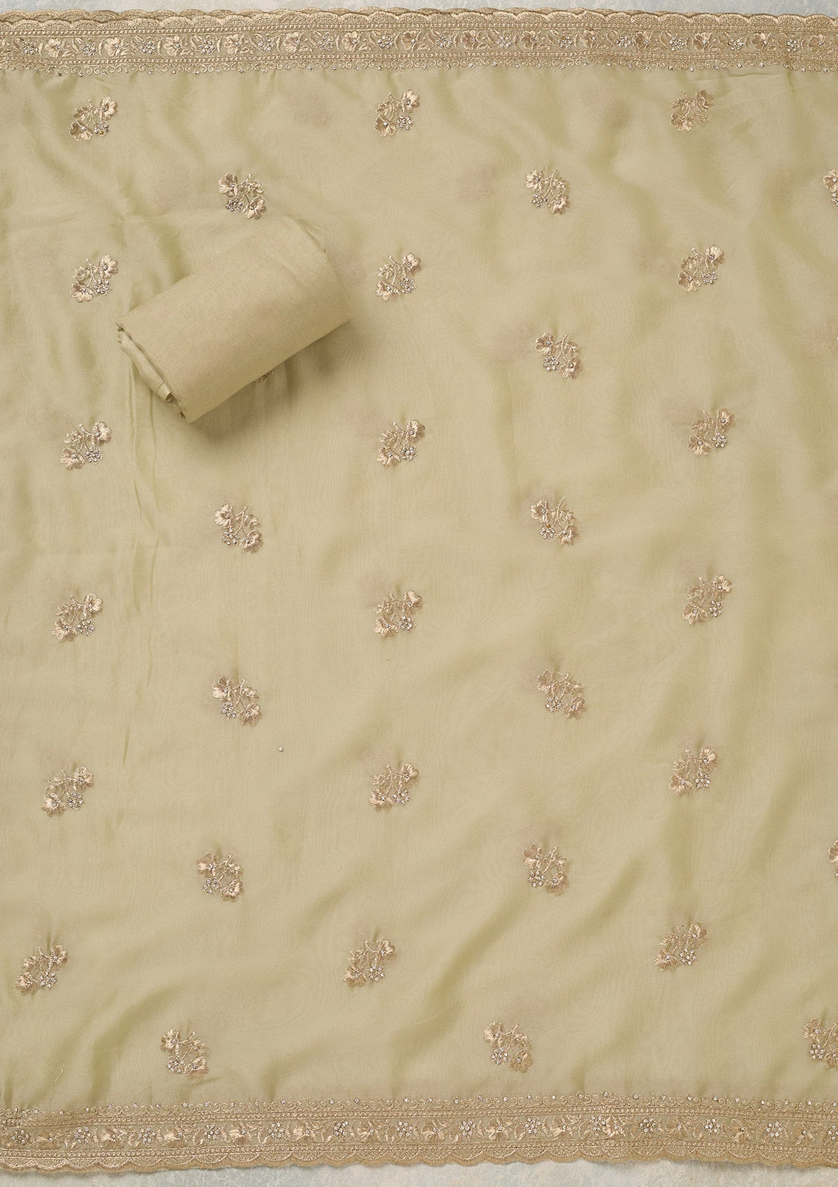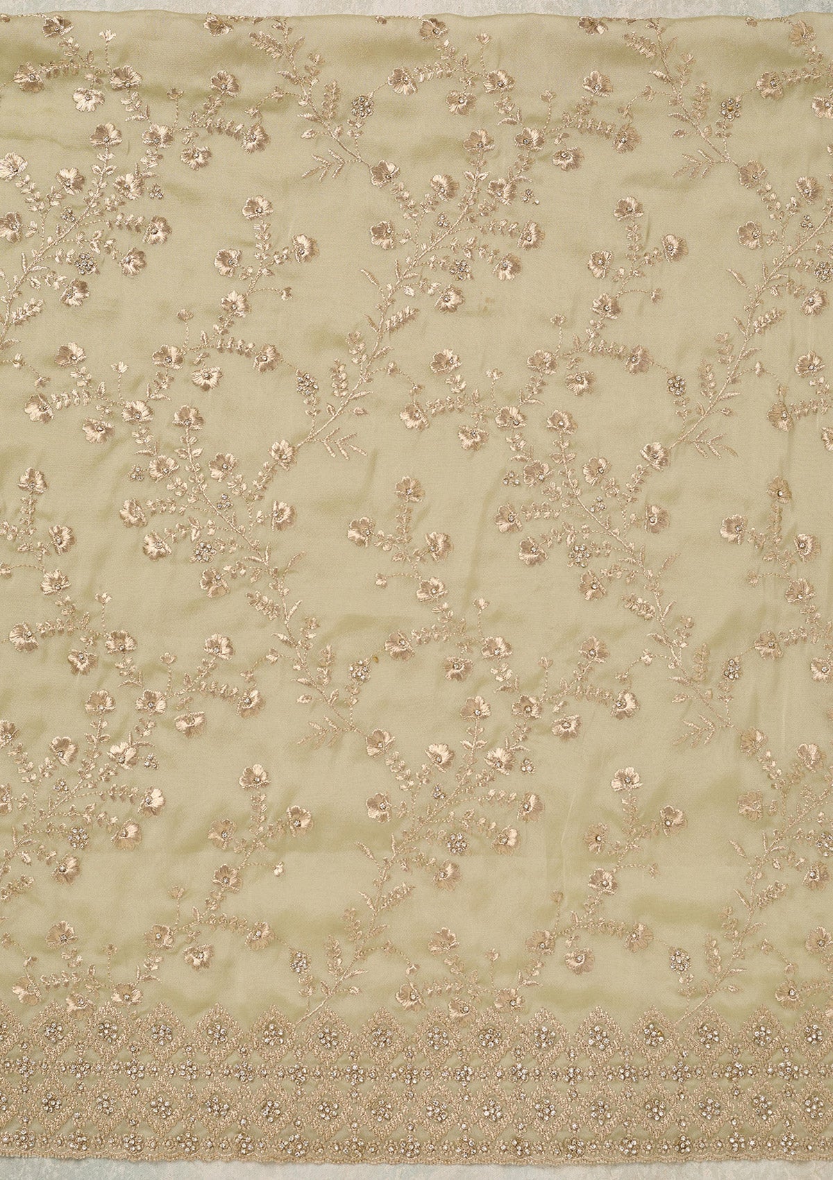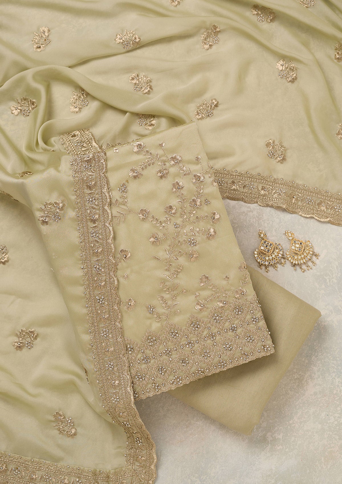 Pista Green Zardozi (Silver) Semi Crepe Unstitched Salwar Suit