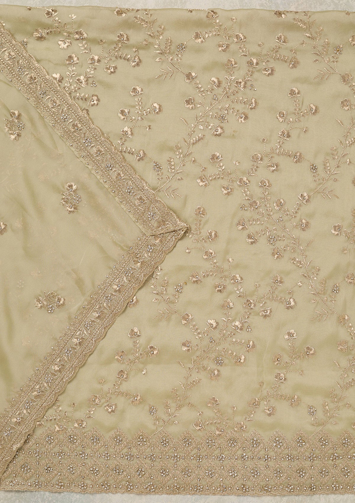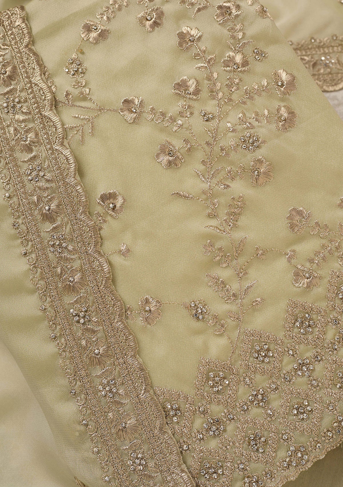 Pista Green Salwar Suit in Semi Crepe fabric. The Salwar Suit is embellished with Zardozi (Silver) embroidery. Accompanied with a bottom and dupatta. Comes with the Koskii promise of premium quality.