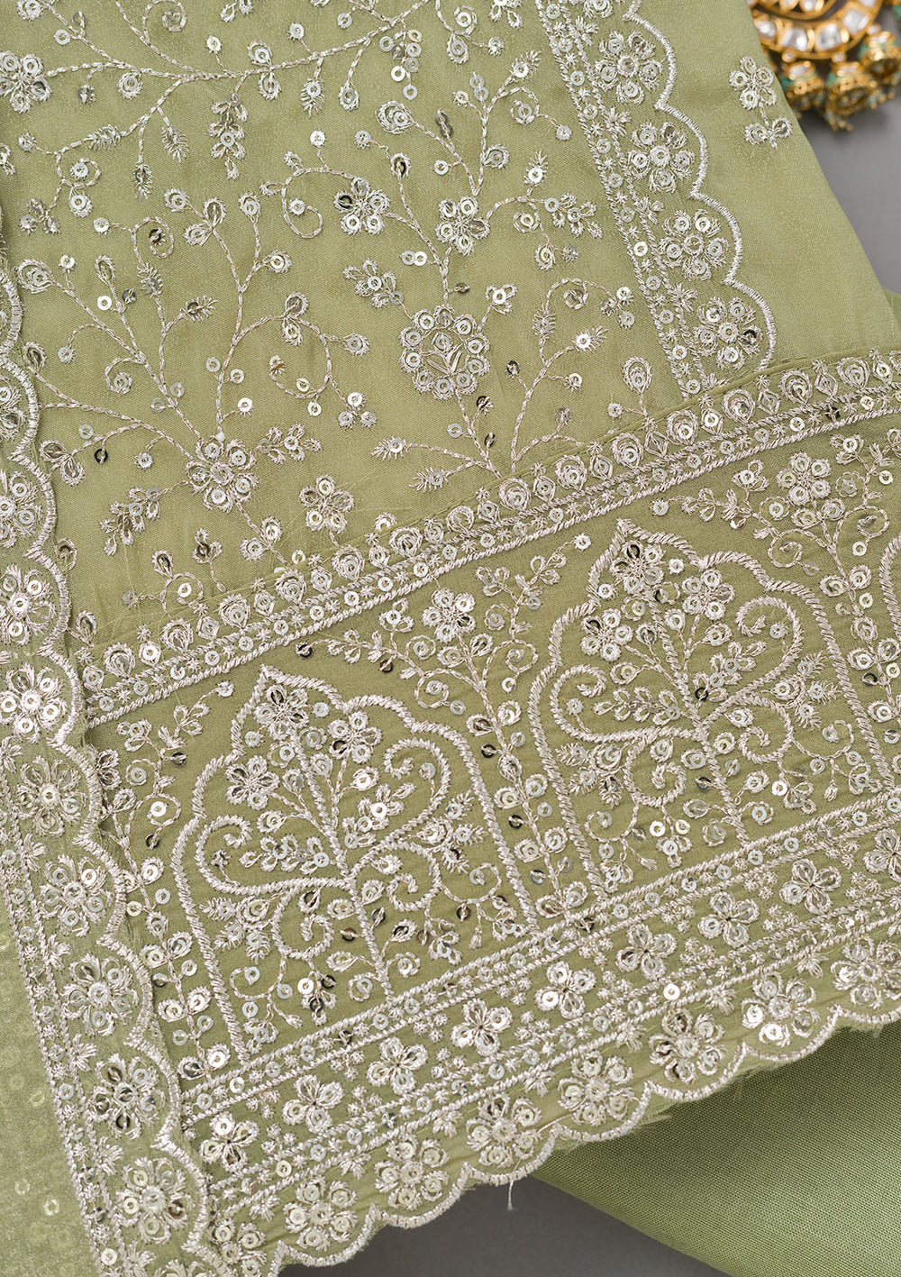 Pista Green Zariwork Georgette Unstitched Salwar Suit