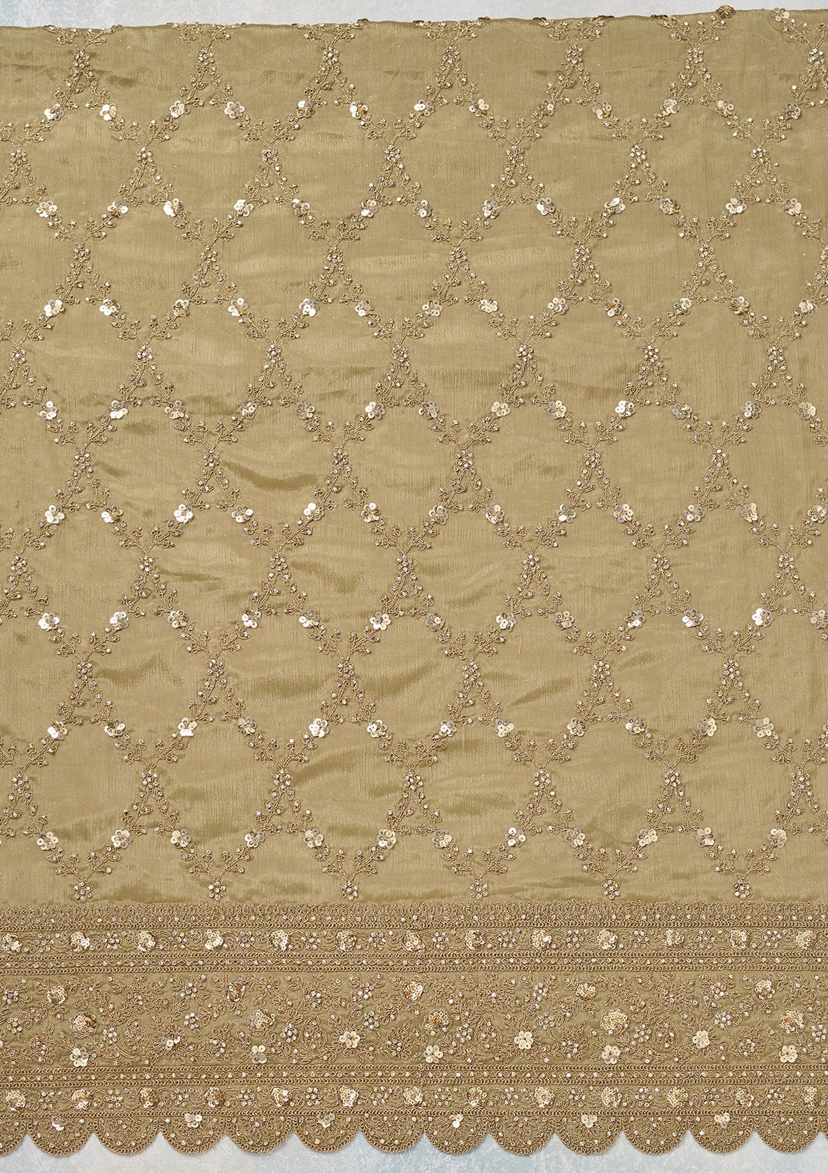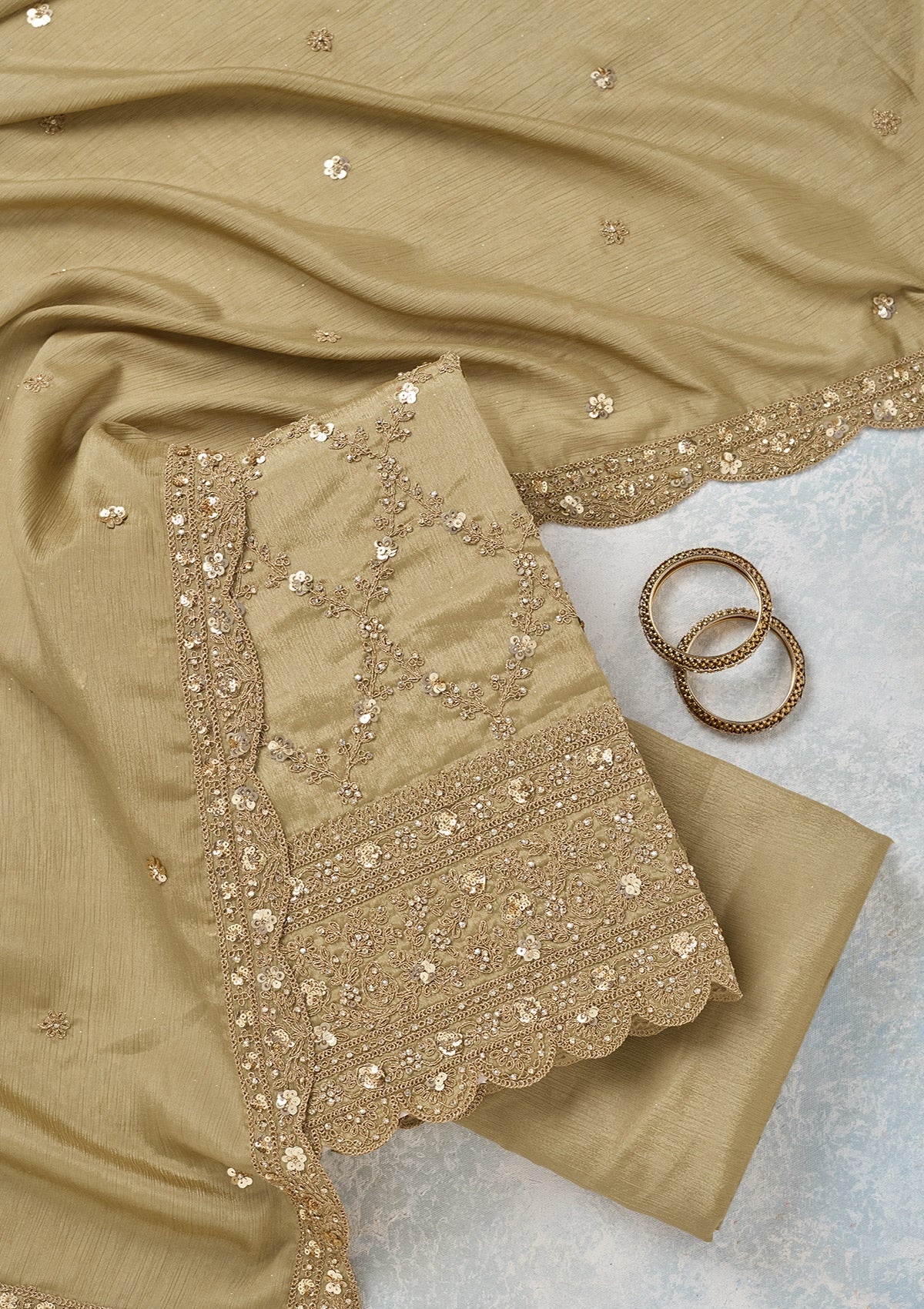 Pista Green Zariwork (Gold) Chinon Unstitched Salwar Suit