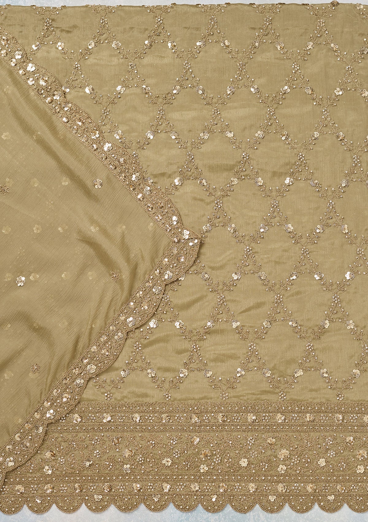 Pista Green Salwar Suit in Chinon fabric. The Salwar Suit is embellished with Zariwork (Gold) embroidery. Accompanied with a bottom and dupatta. Comes with the Koskii promise of premium quality.