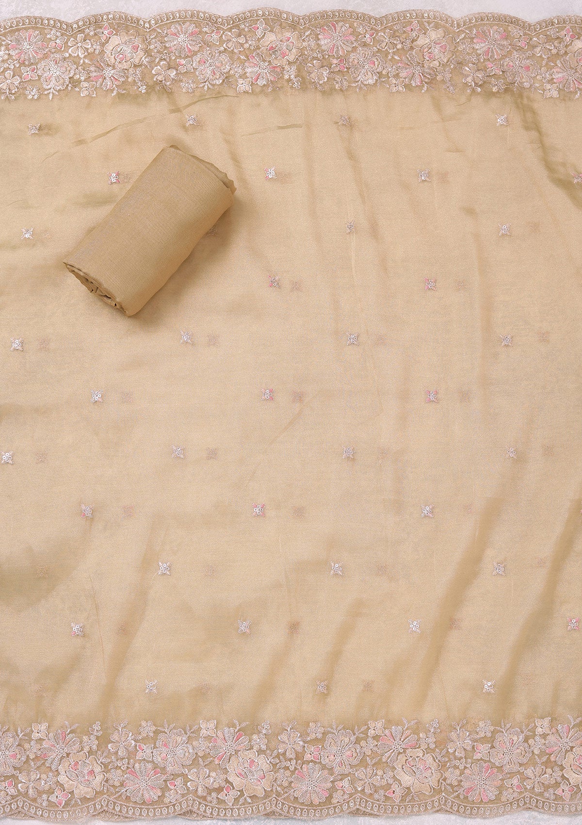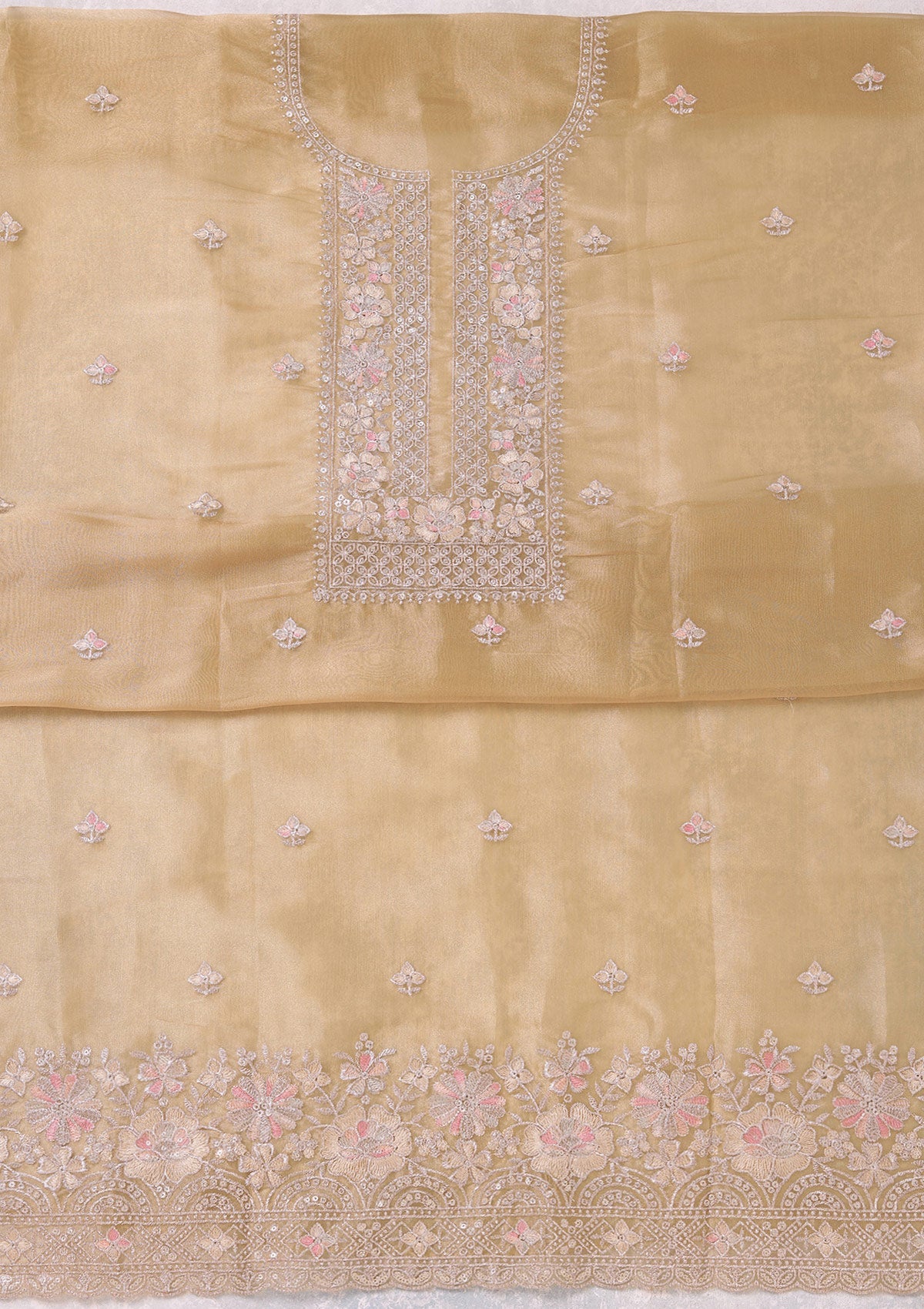 Pista Green Zariwork (Gold) Tissue Unstitched Salwar Suit