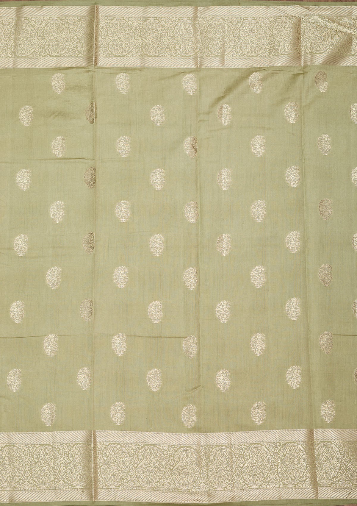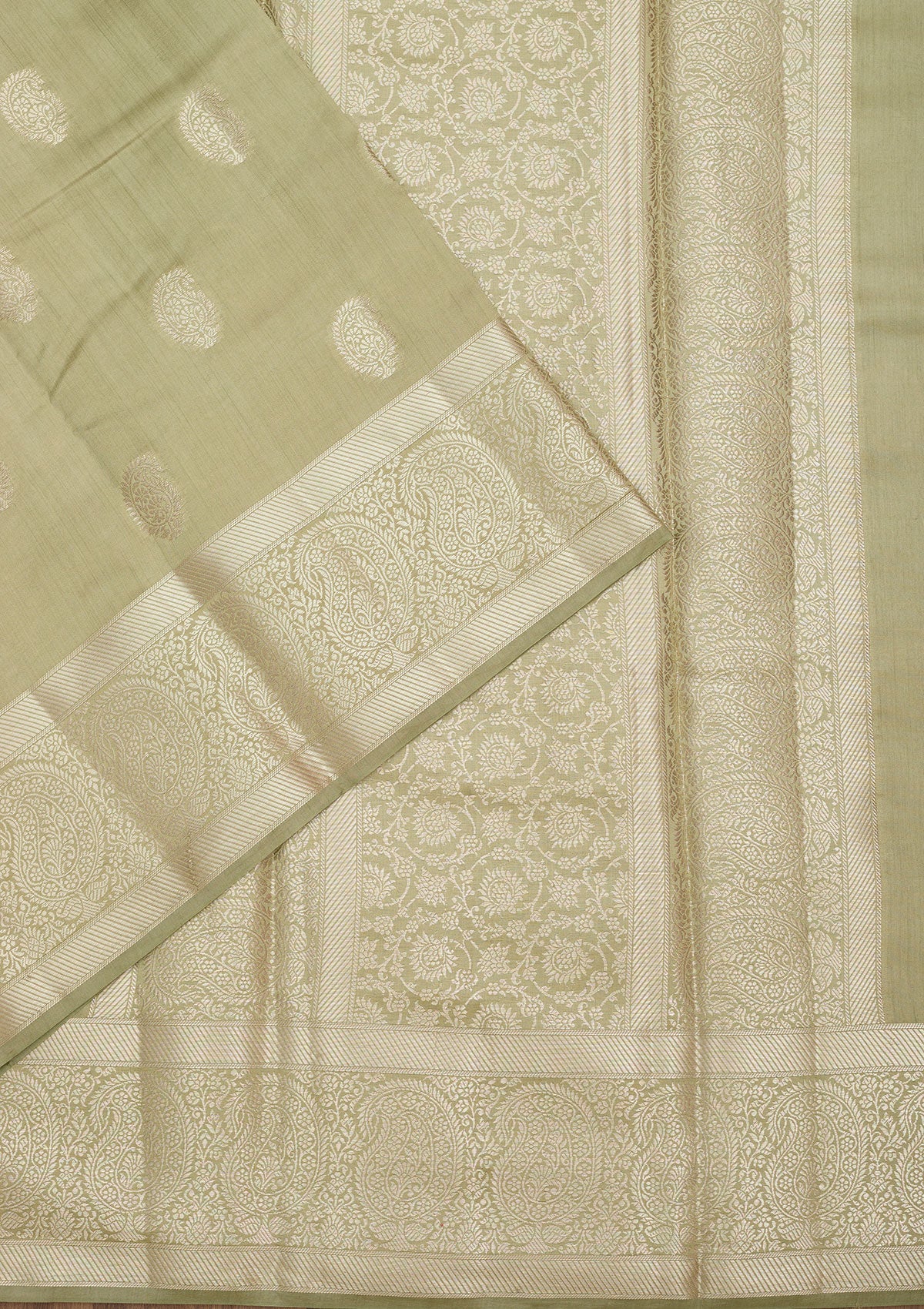 Pista Green Silk_Saree in Pure Silk fabric. The Silk_Saree is elevated with Zariwork embroidery. It comes with an Unstitched blouse. Comes with the Koskii promise of premium quality.