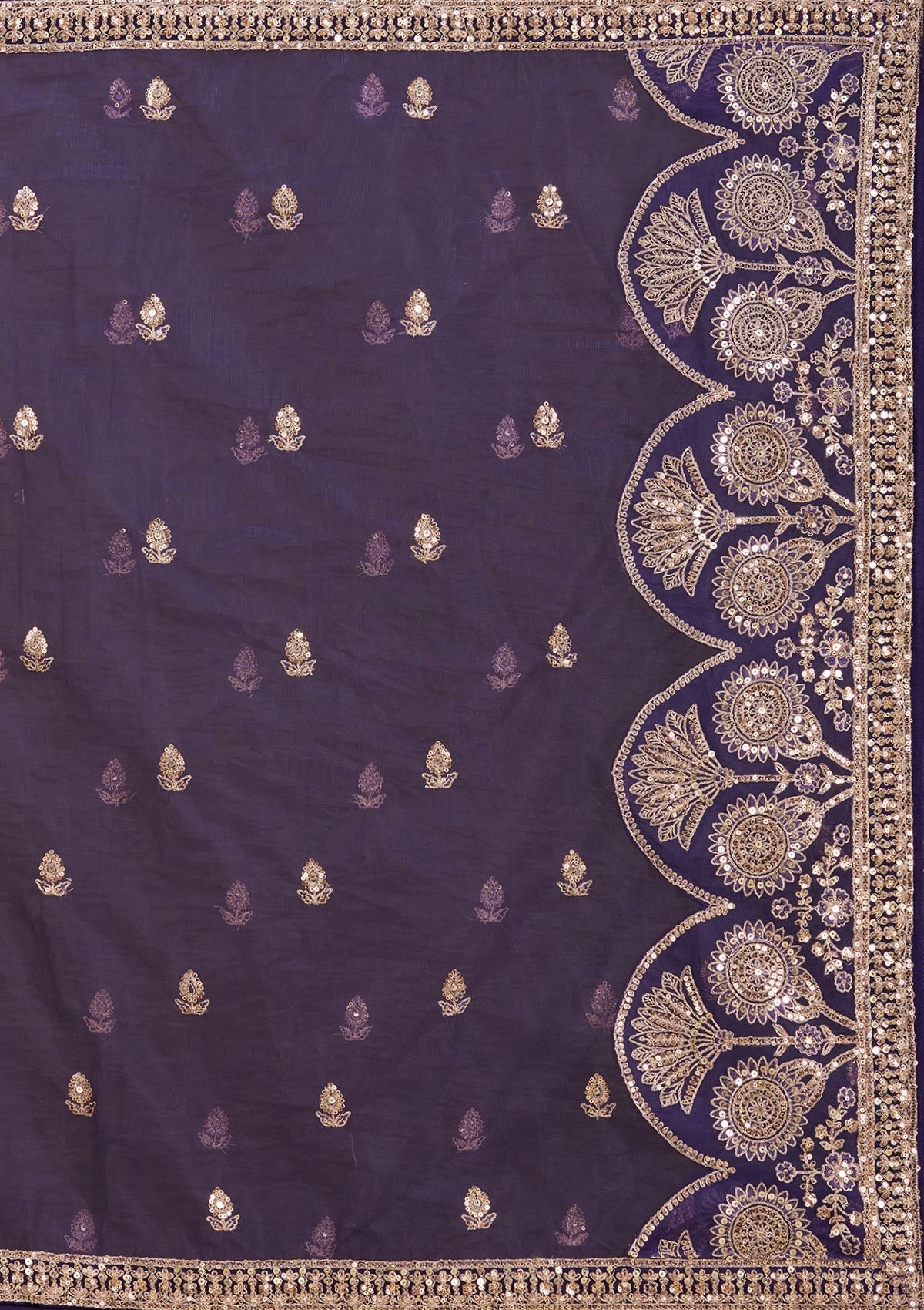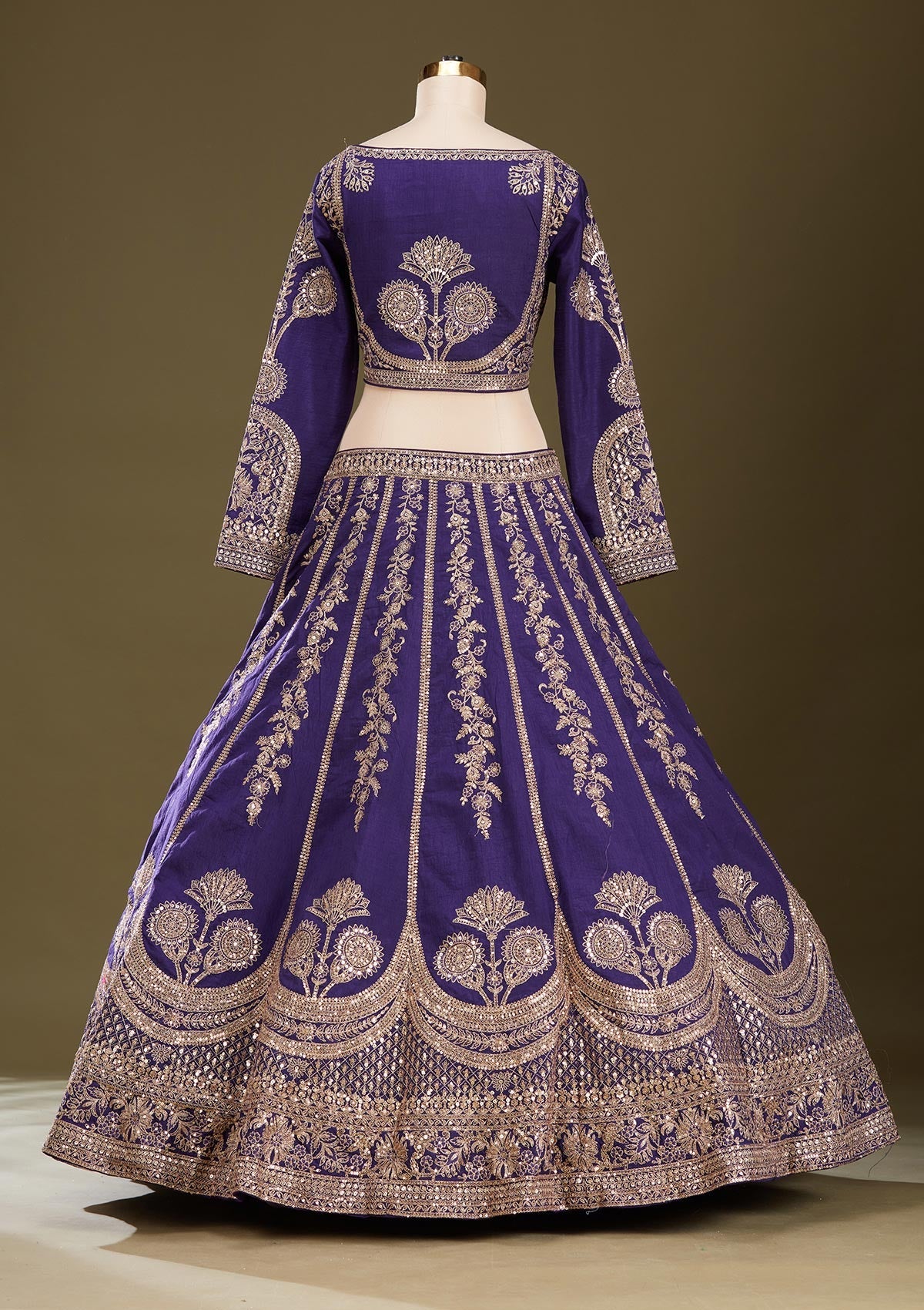 Purple Readymade Lehenga in Raw Silk fabric. The Lehenga is embellished with Cording embroidery. Accompanied with an Readymade blouse and dupatta. Comes with the Koskii promise of premium quality.