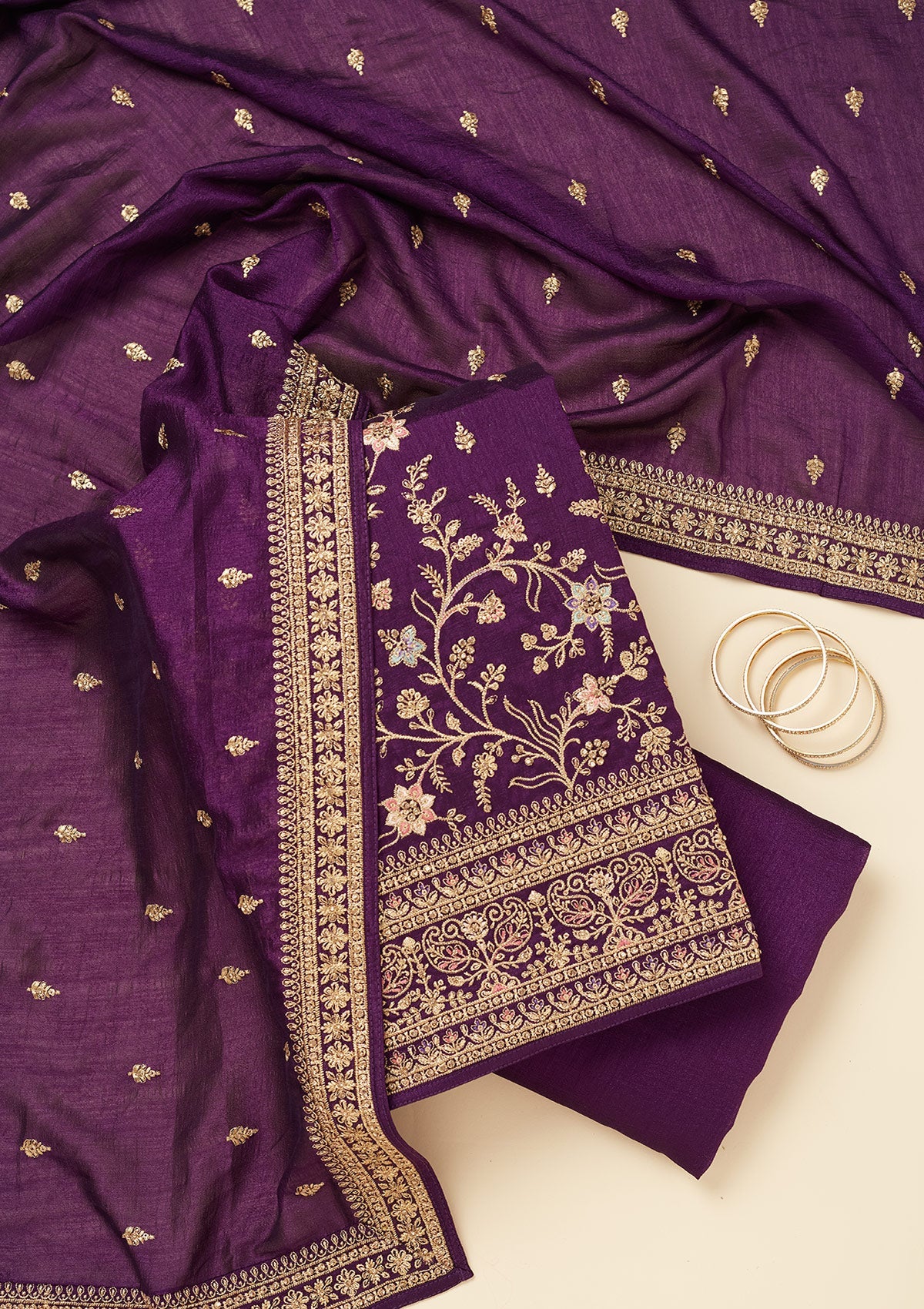 Purple Cording Soft Raw Silk Unstitched Salwar Suit
