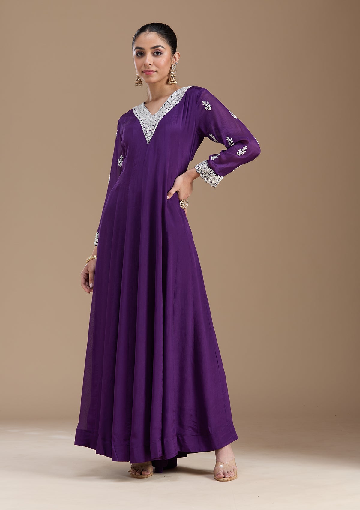 Purple Salwar Suit in Crepe fabric The Salwar Suit is embellished with Cutdana embroidery Accompanied with a bottom and dupatta Comes with the Koskii promise of premium quality.