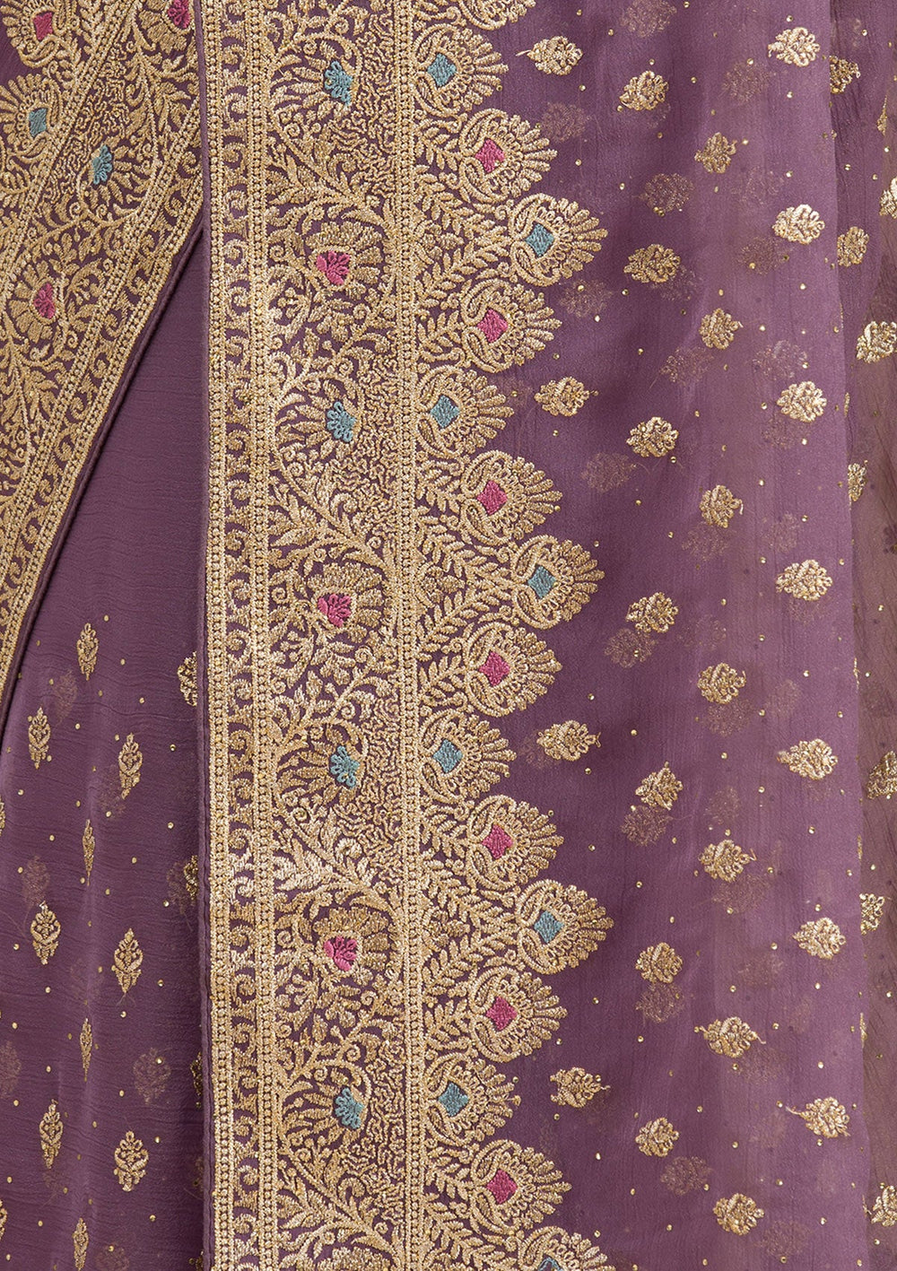 Purple Saree in Chiffon fabric. The Saree is elevated with Prints . It comes with an Unstitched blouse. Comes with the Koskii promise of premium quality.