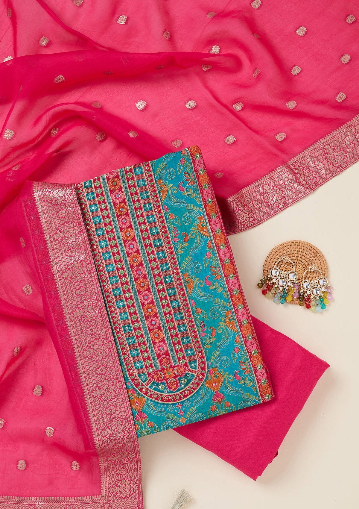 Rama Green Zariwork Dola Silk Unstitched Salwar Suit