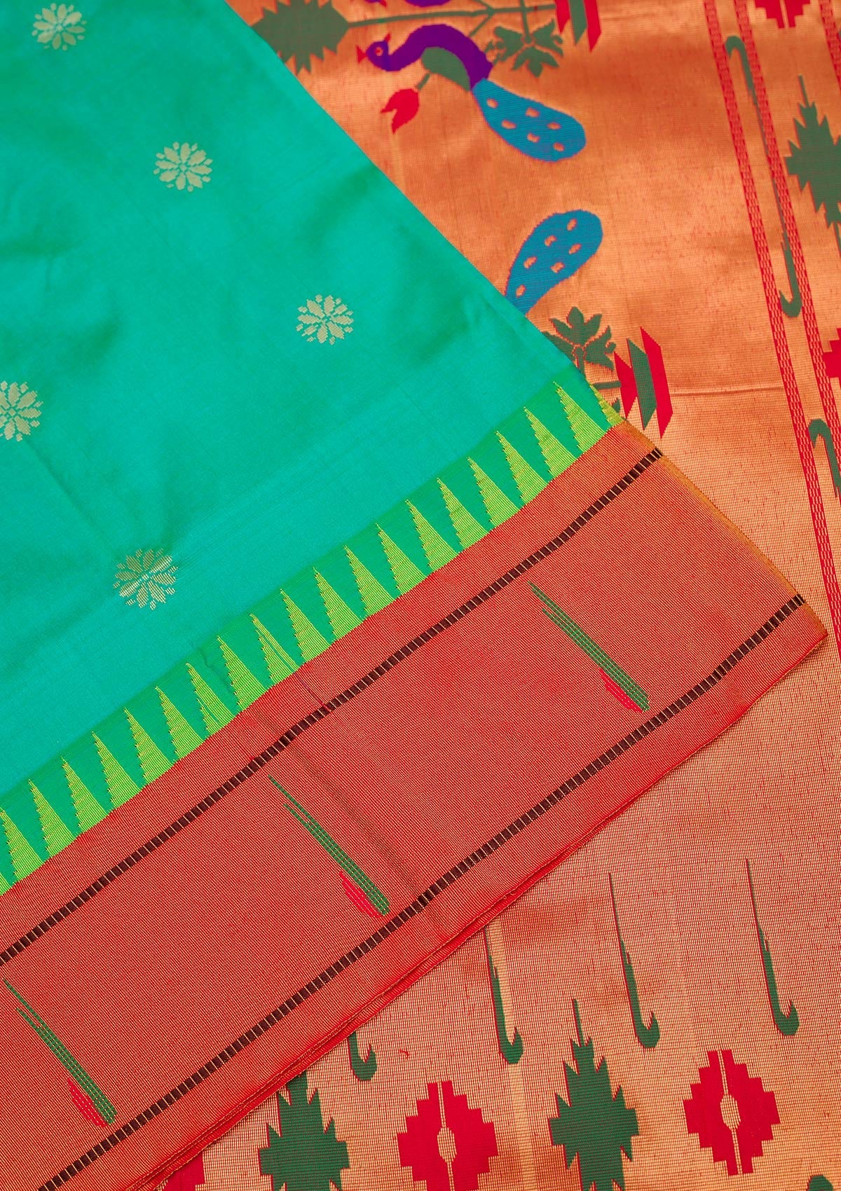 Rama Green Saree in Pure Silk fabric The Saree is elevated with Zariwork embroidery It comes with an Unstitched blouse Comes with the Koskii promise of premium quality.