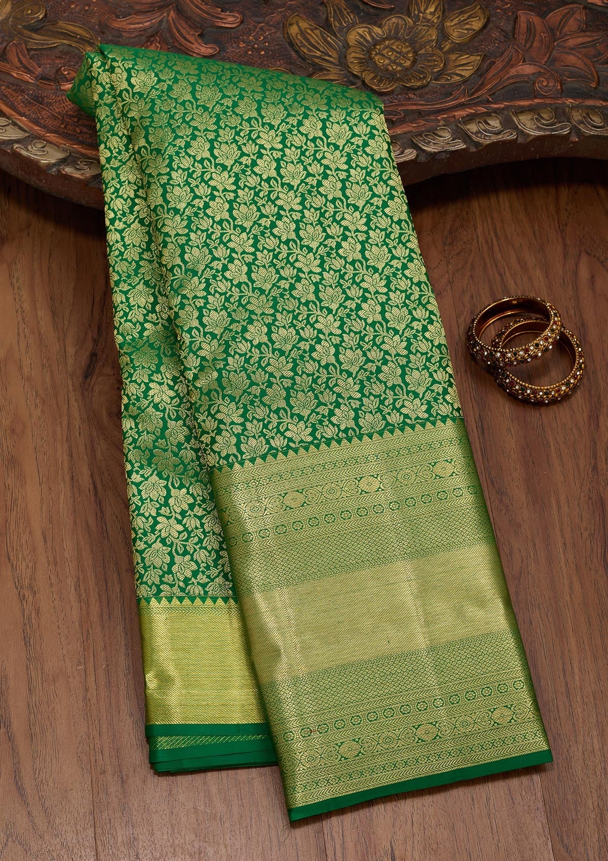 Rama Green Zariwork Pure Silk Saree