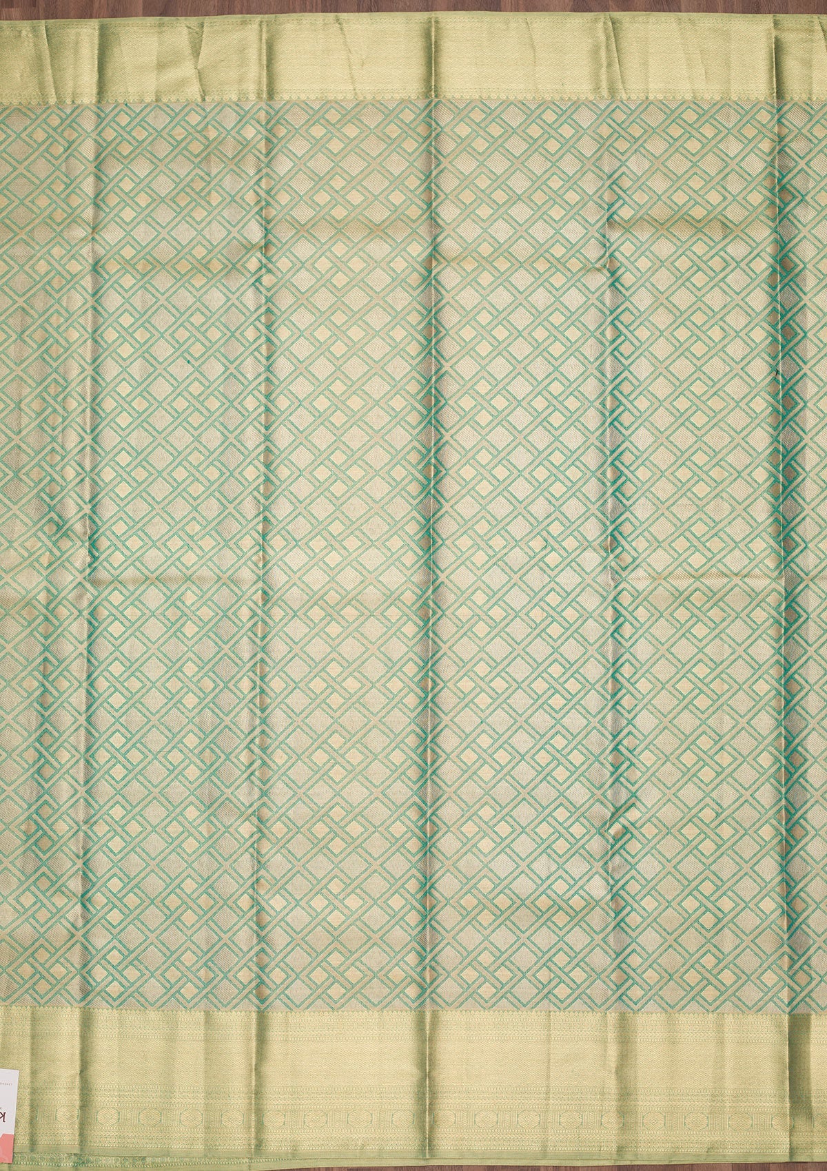 Rama Green Silk Saree in Tissue fabric. The Silk Saree is elevated with Zariwork embroidery. It comes with an Unstitched blouse. Comes with the Koskii promise of premium quality.