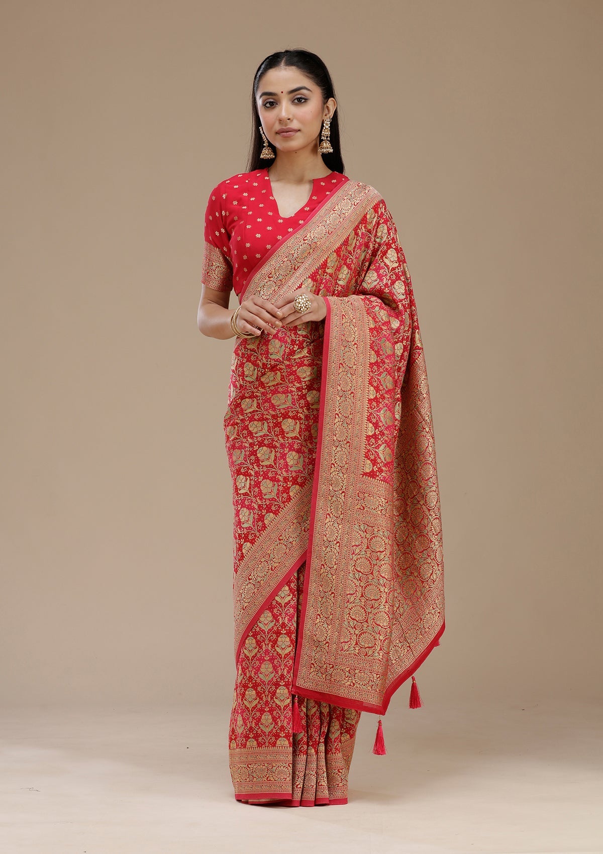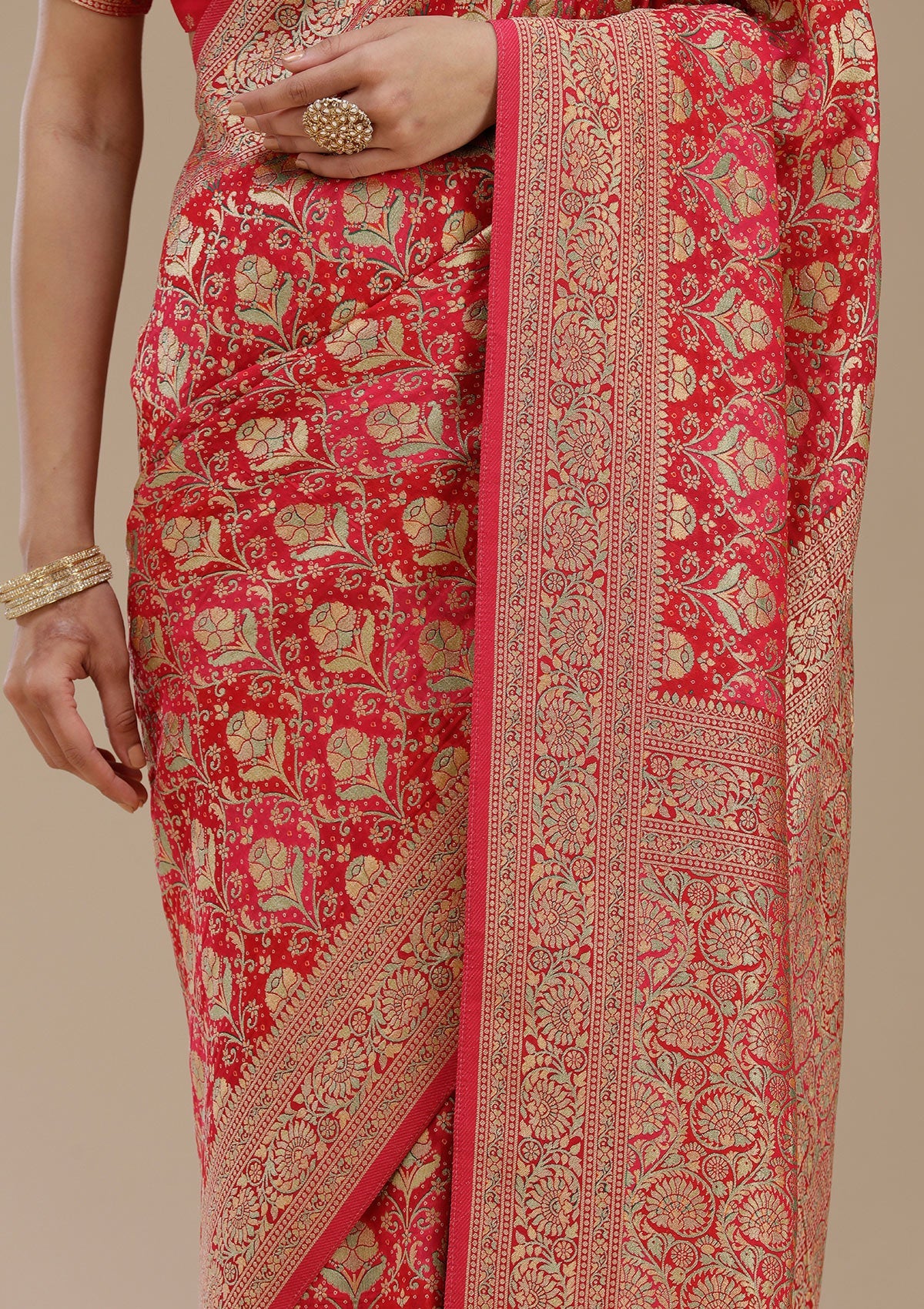 Rani Pink Silk_Saree in Silk fabric. The Silk_Saree is elevated with Banarasi embroidery. It comes with an Unstitched blouse. Comes with the Koskii promise of premium quality.