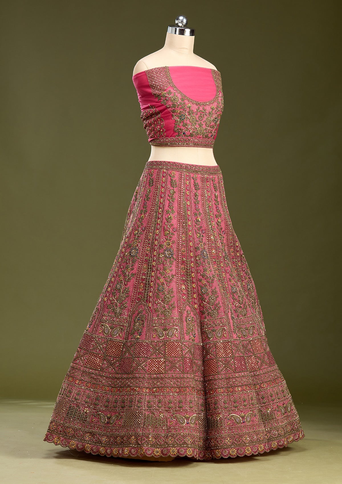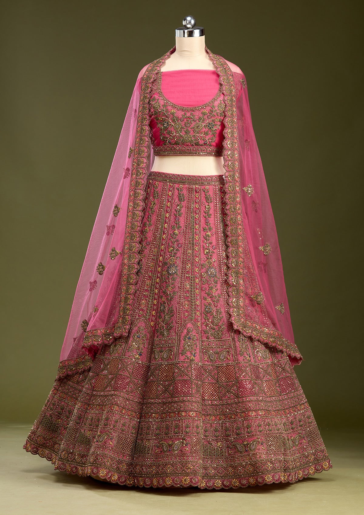 Rani Pink Readymade Lehenga in Net fabric. The Lehenga is embellished with Cording embroidery. Accompanied with an Readymade blouse and dupatta. Comes with the Koskii promise of premium quality.