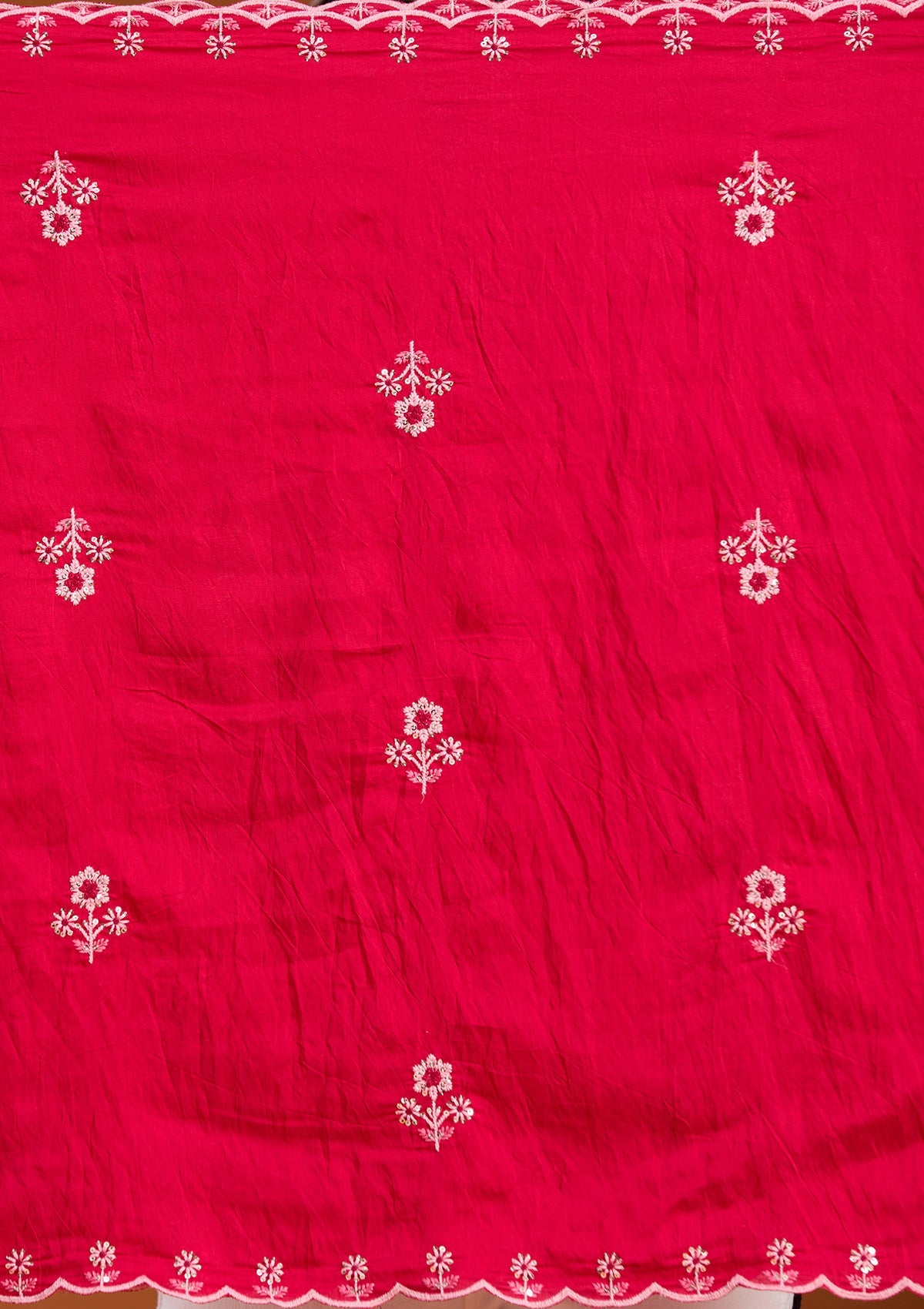 Rani Pink Salwar Suit in Chanderi fabric The Salwar Suit is embellished with Cutdana embroidery Accompanied with a bottom and dupatta Comes with the Koskii promise of premium quality.