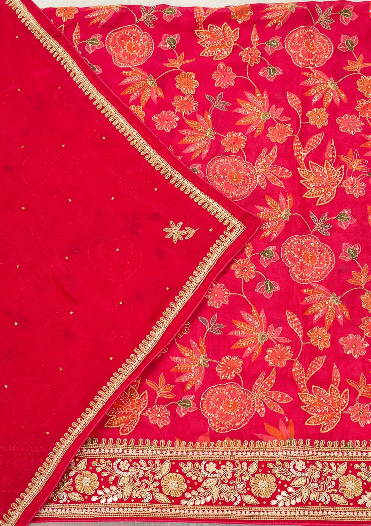 Rani Pink Salwar Suit in Crepe fabric. The Salwar Suit is embellished with Cutdana embroidery. Accompanied with a bottom and dupatta. Comes with the Koskii promise of premium quality.