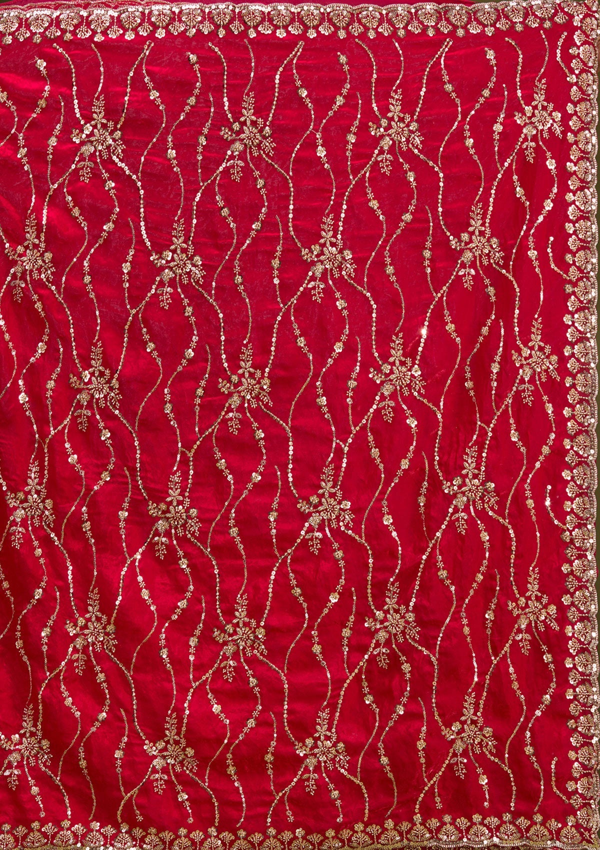 Rani Pink Saree in Tissue fabric. The Saree is elevated with Cutdana embroidery. It comes with an Unstitched blouse. Comes with the Koskii promise of premium quality.