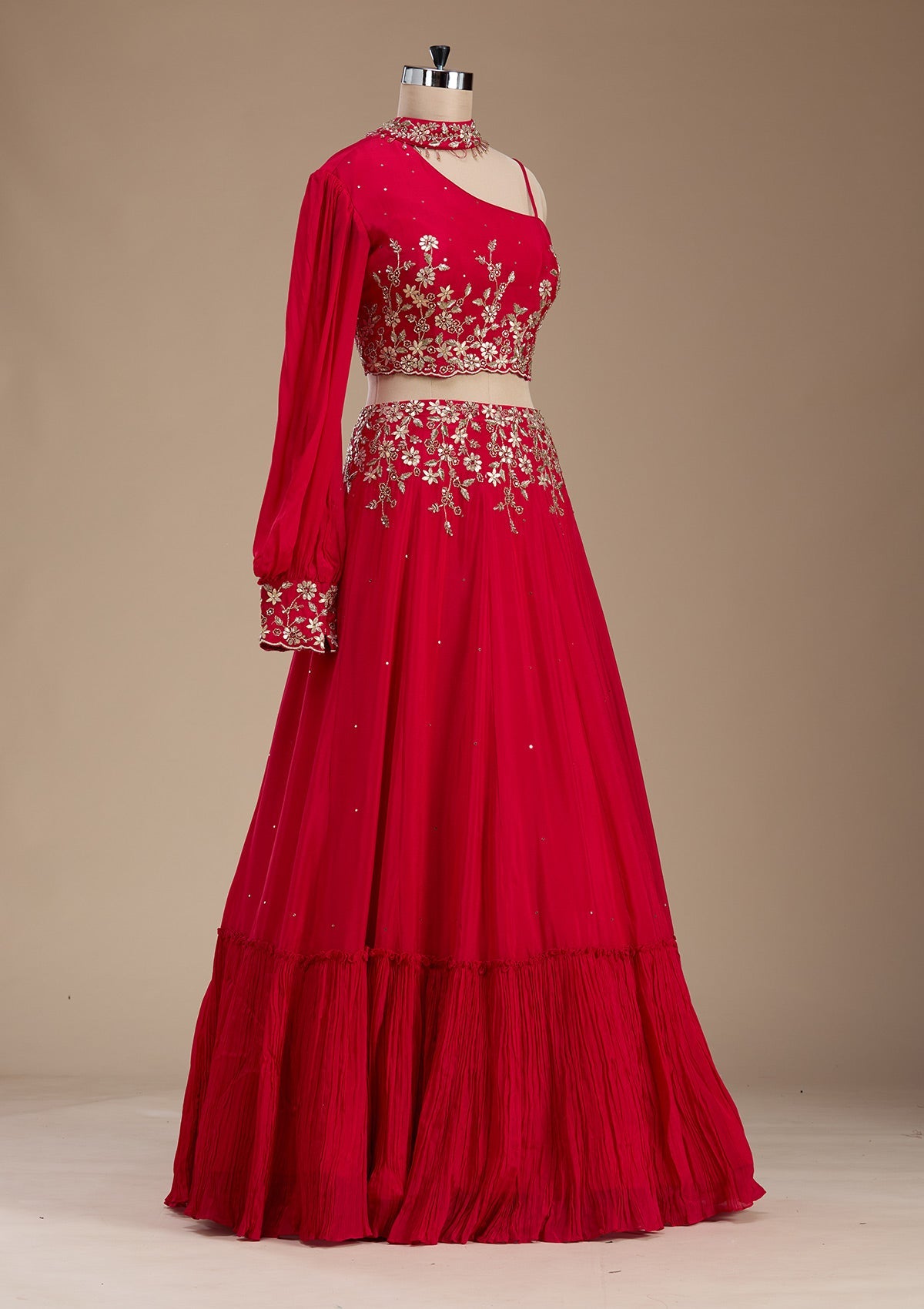 Rani Pink Readymade Lehenga in Crepe fabric The Lehenga is embellished with Gotapatti embroidery Accompanied with an Readymade blouse and dupatta Comes with the Koskii promise of premium quality.