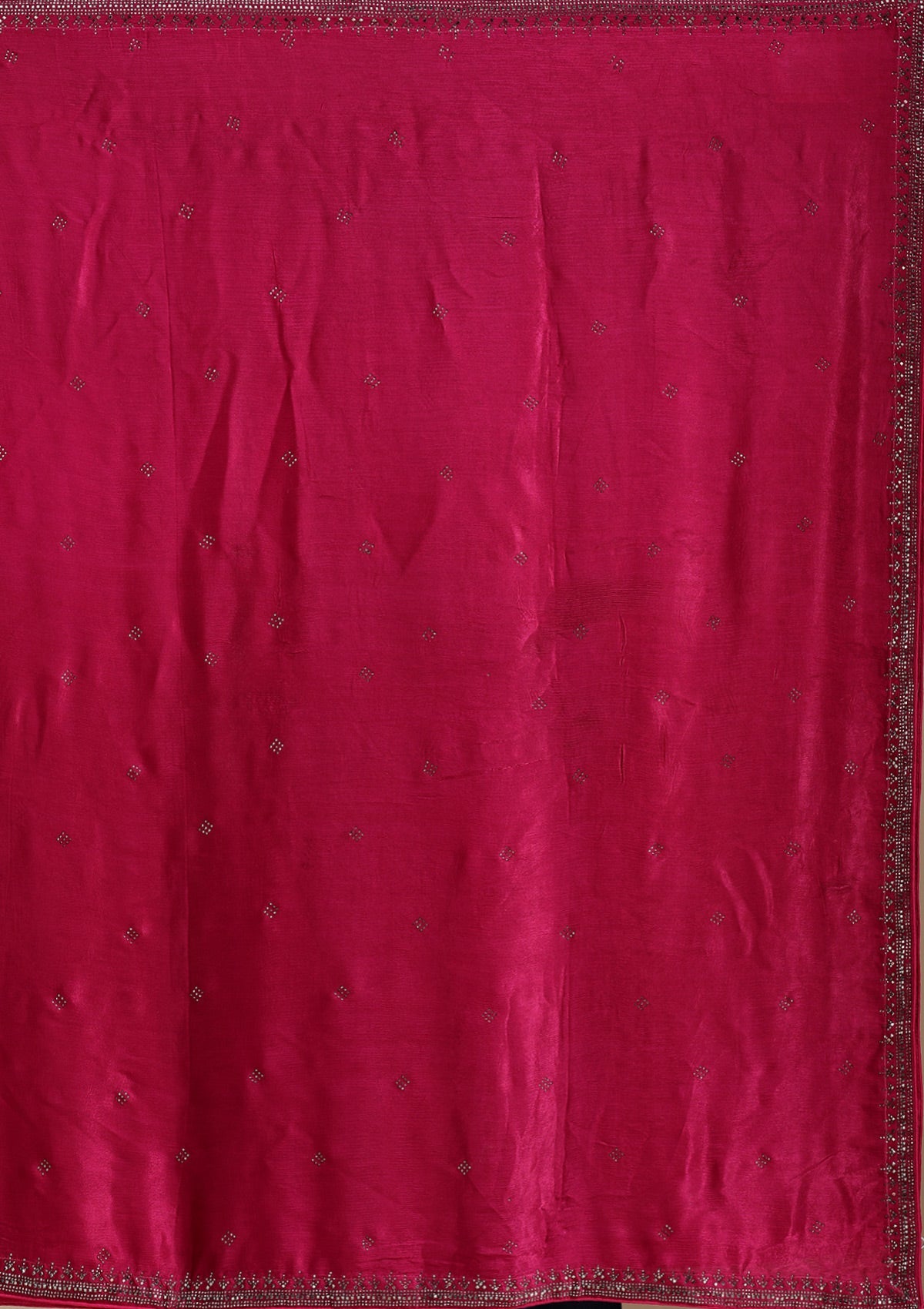 Rani Pink Semi-Stitched Lehenga in Satin fabric. The Lehenga is embellished with Silver Zariwork embroidery. Accompanied with an Semi-Stitched blouse and dupatta. Comes with the Koskii promise of premium quality.