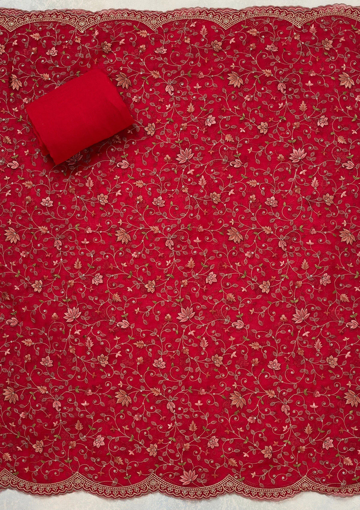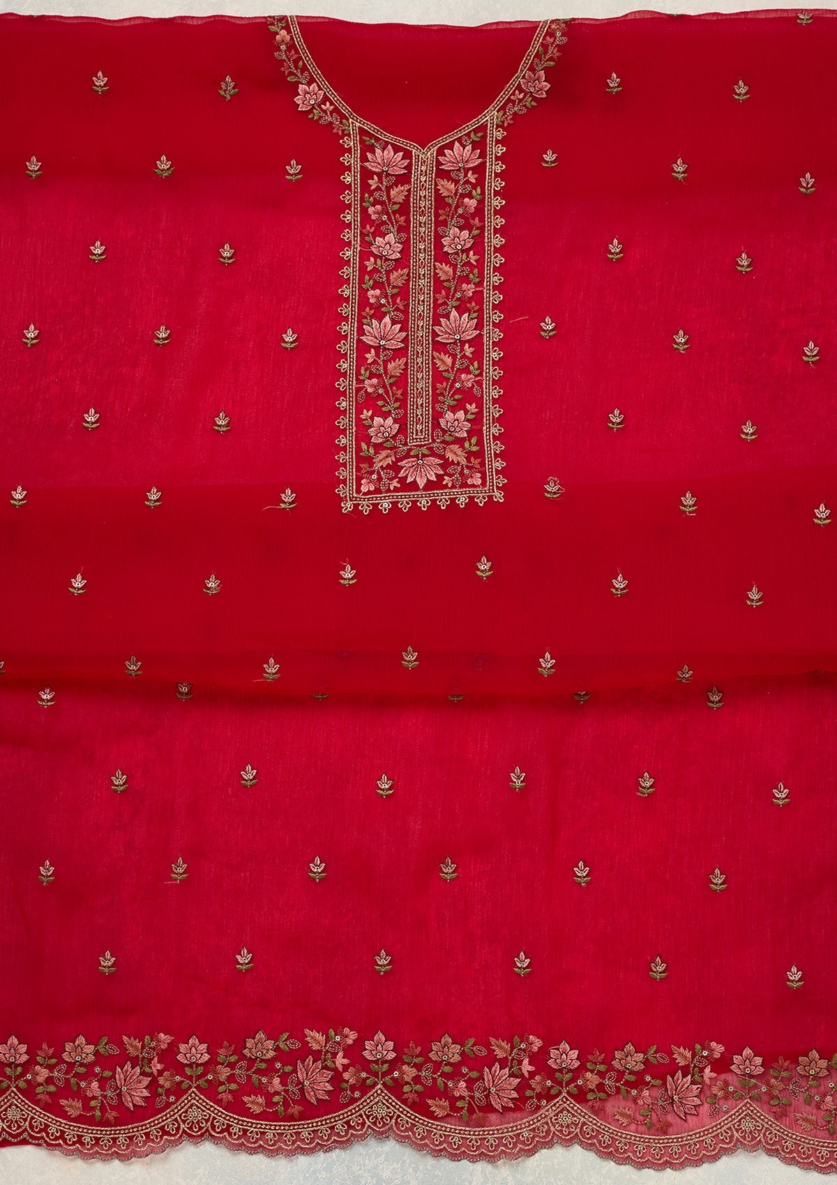 Rani Pink Threadwork Tissue Unstitched Salwar Suit