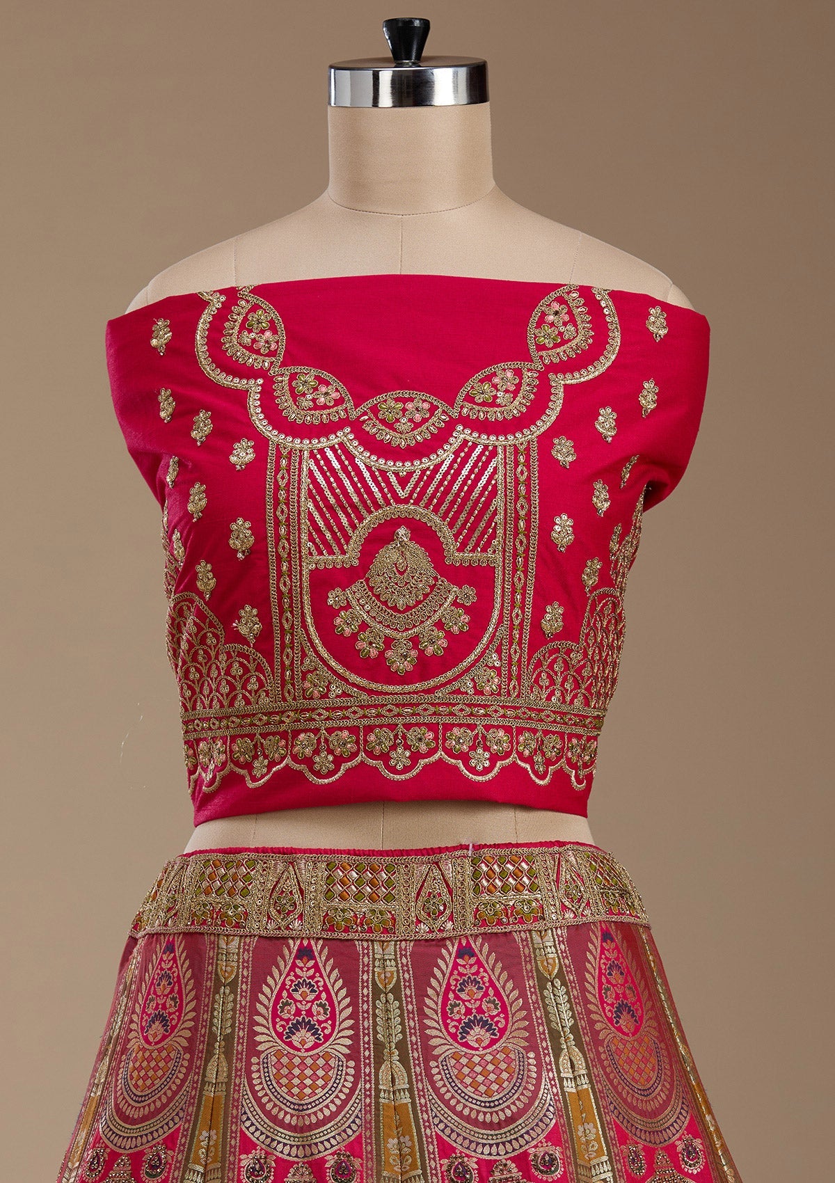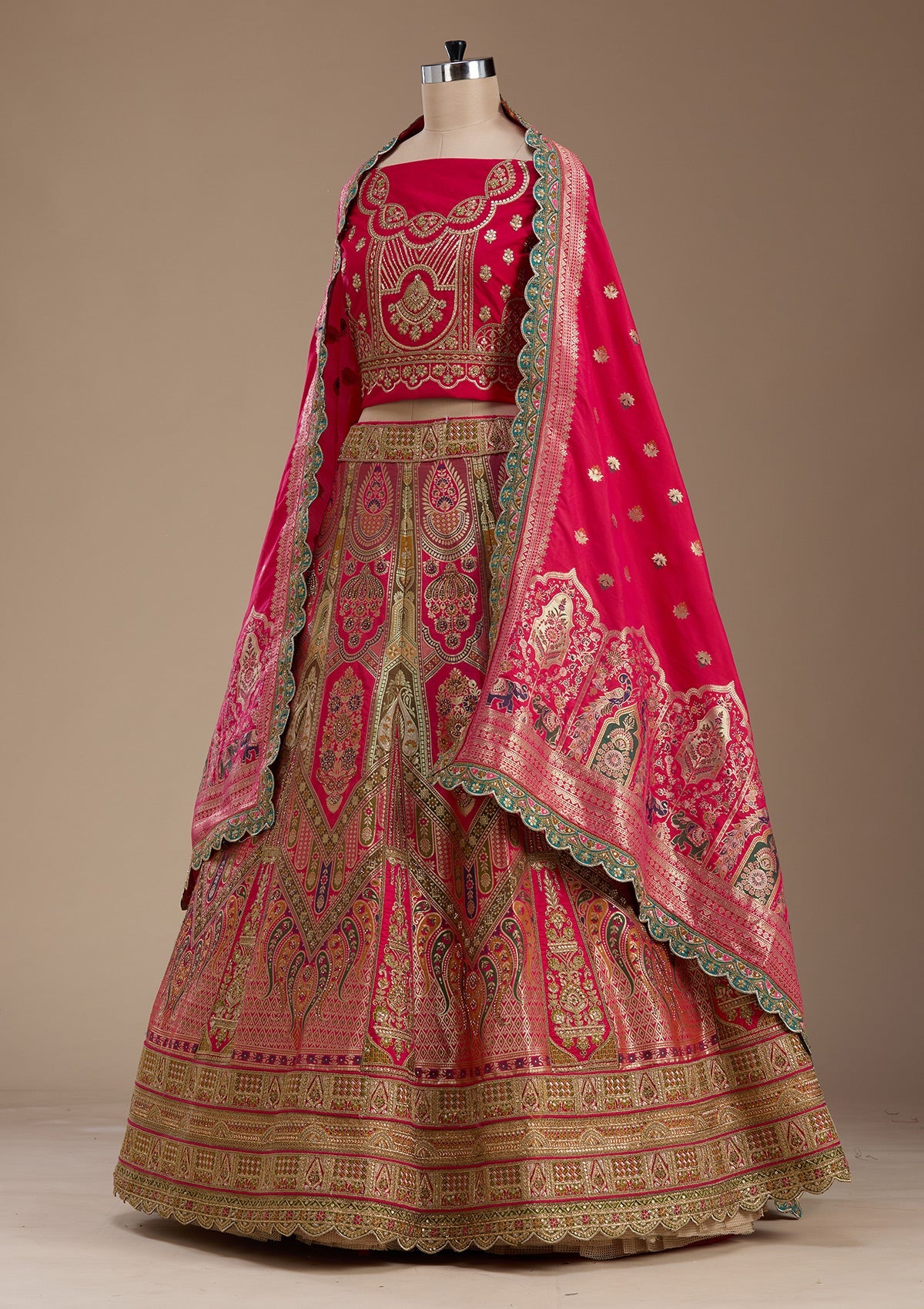 Rani Pink Zariwork Banarasi Semi-Stitched Lehenga