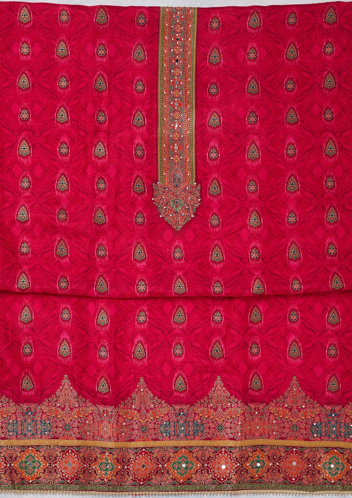 Rani Pink Zariwork Dola Silk Unstitched Salwar Suit