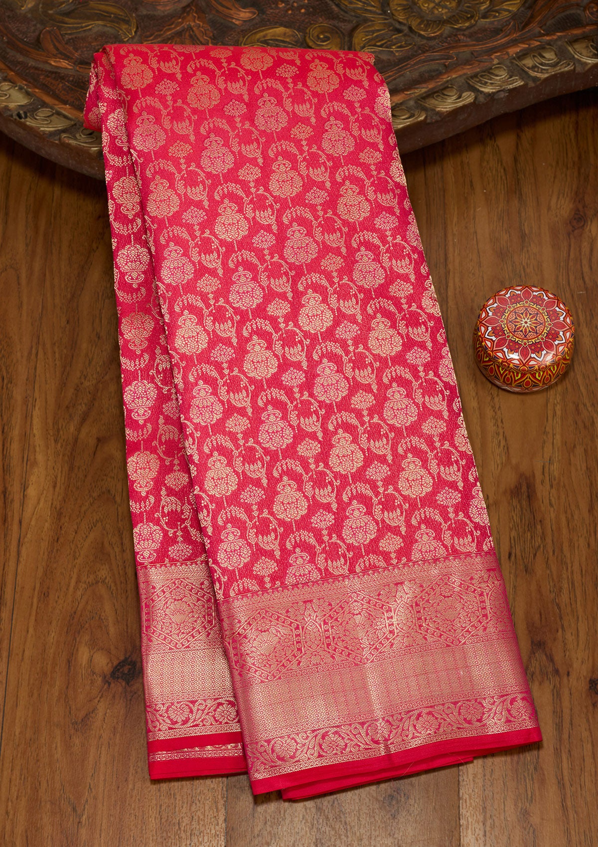 Rani Pink Zariwork (Gold) Silk Silk Saree