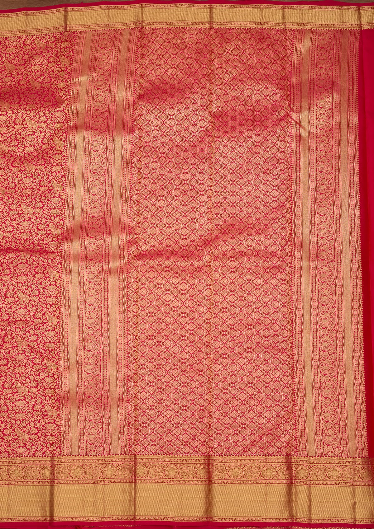 Rani Pink Zariwork (Gold) Silk Silk Saree
