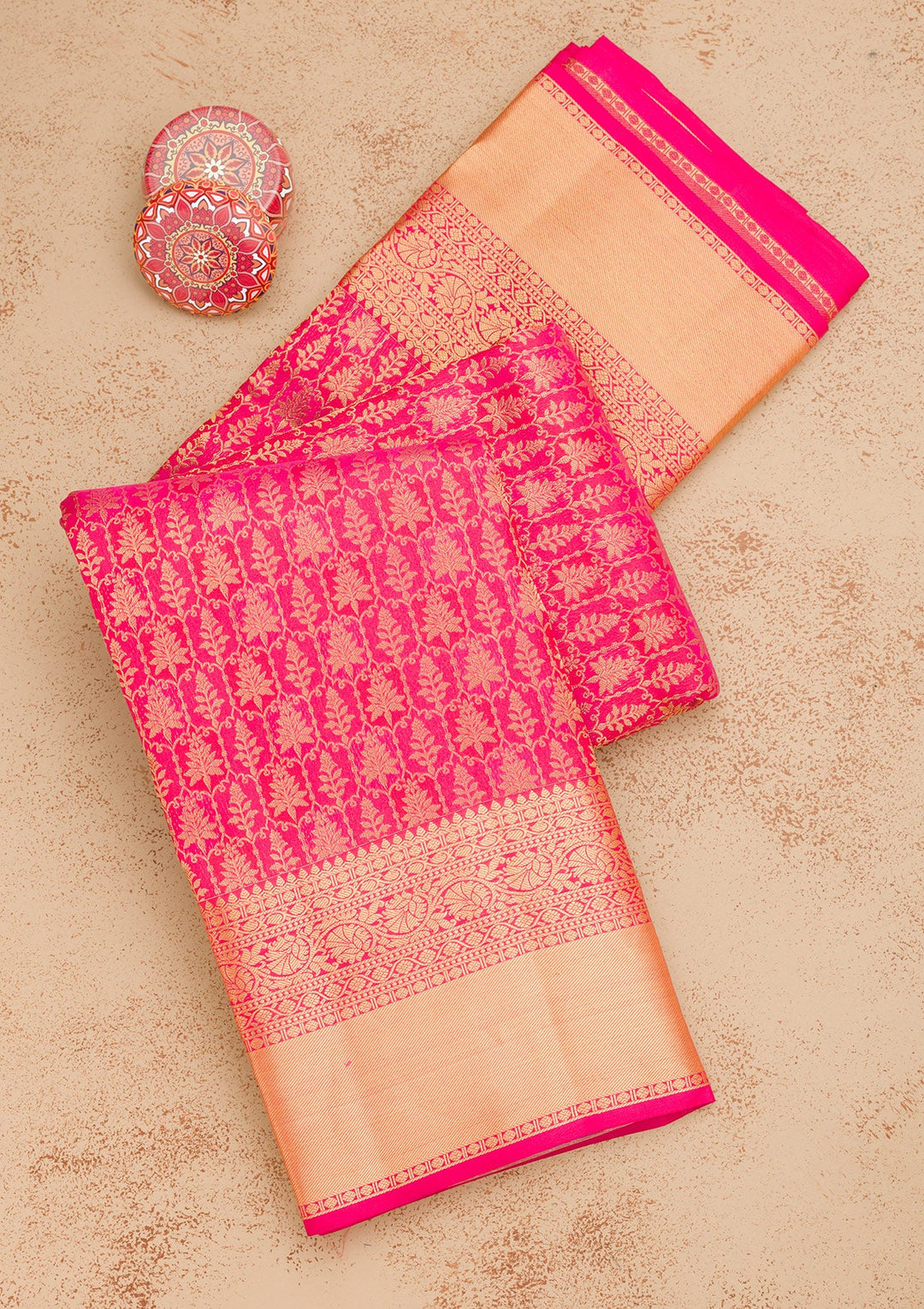 Rani Pink Zariwork Pure Silk Saree