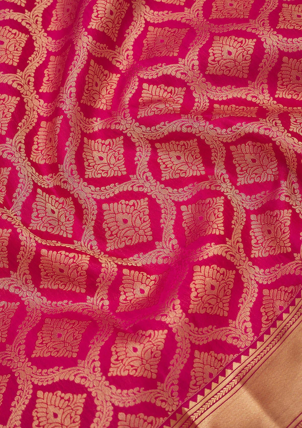 Rani Pink Zariwork Pure Silk Saree-Koskii