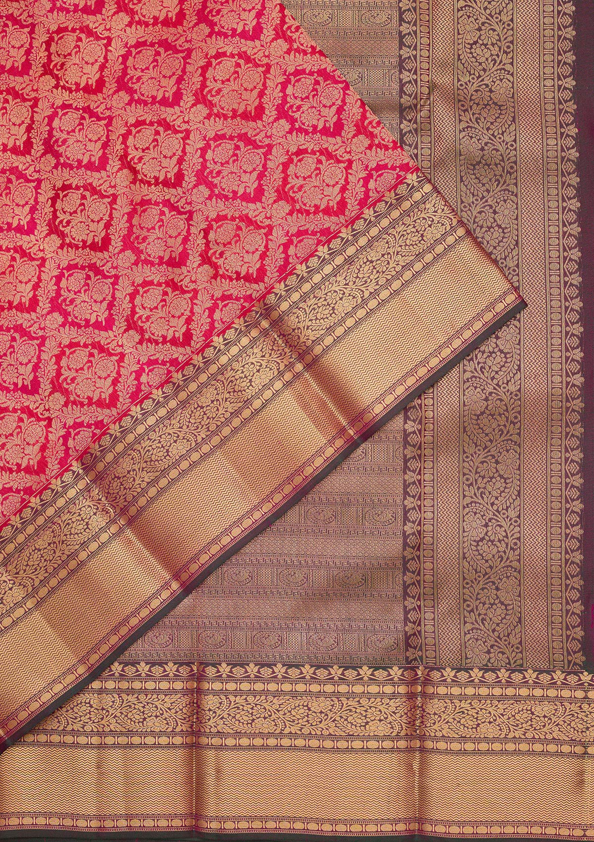 Rani Pink Zariwork Pure Silk Saree-koskii