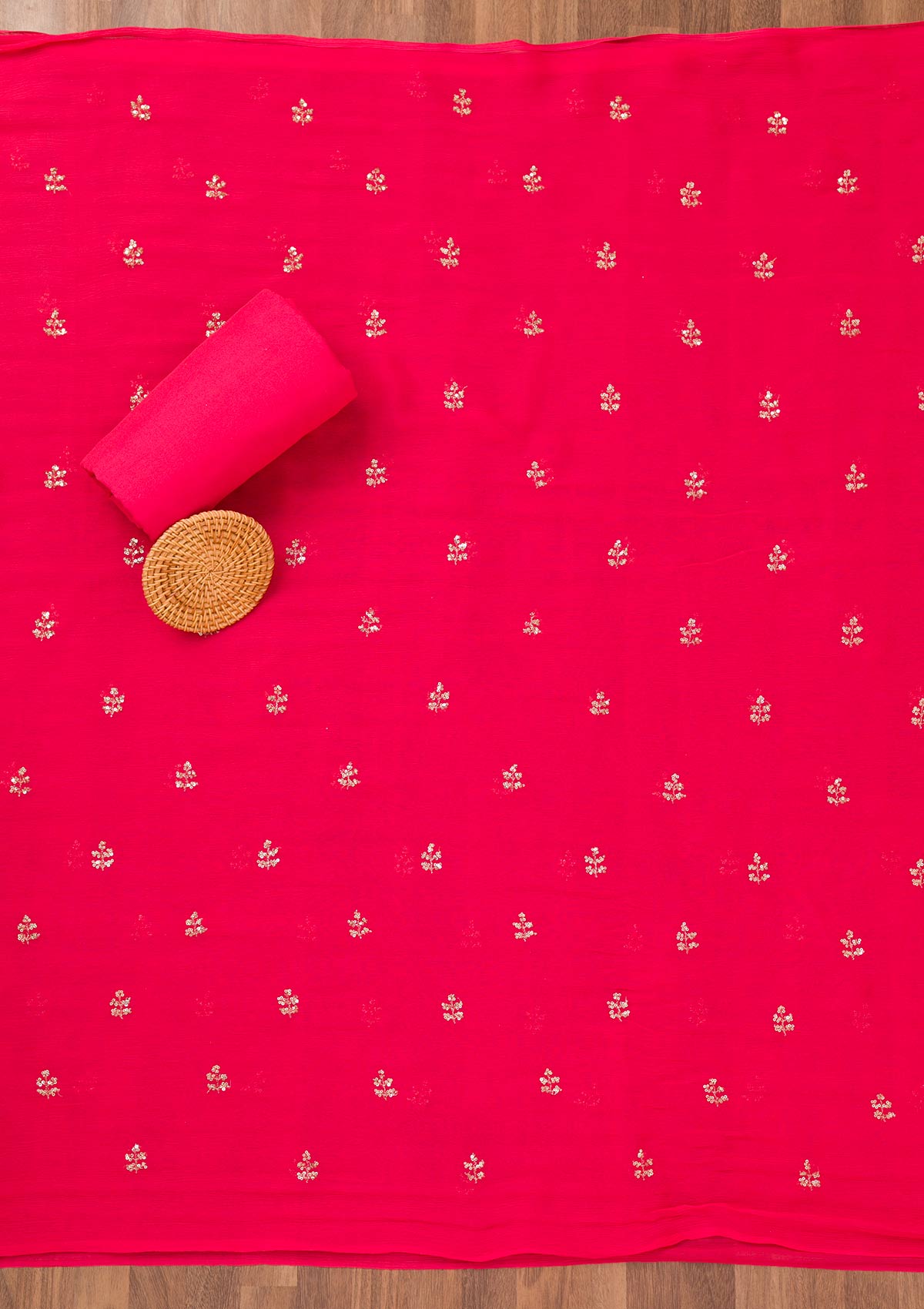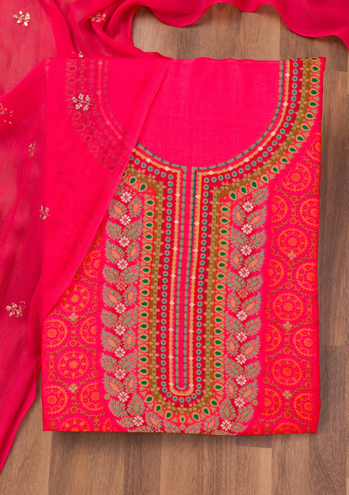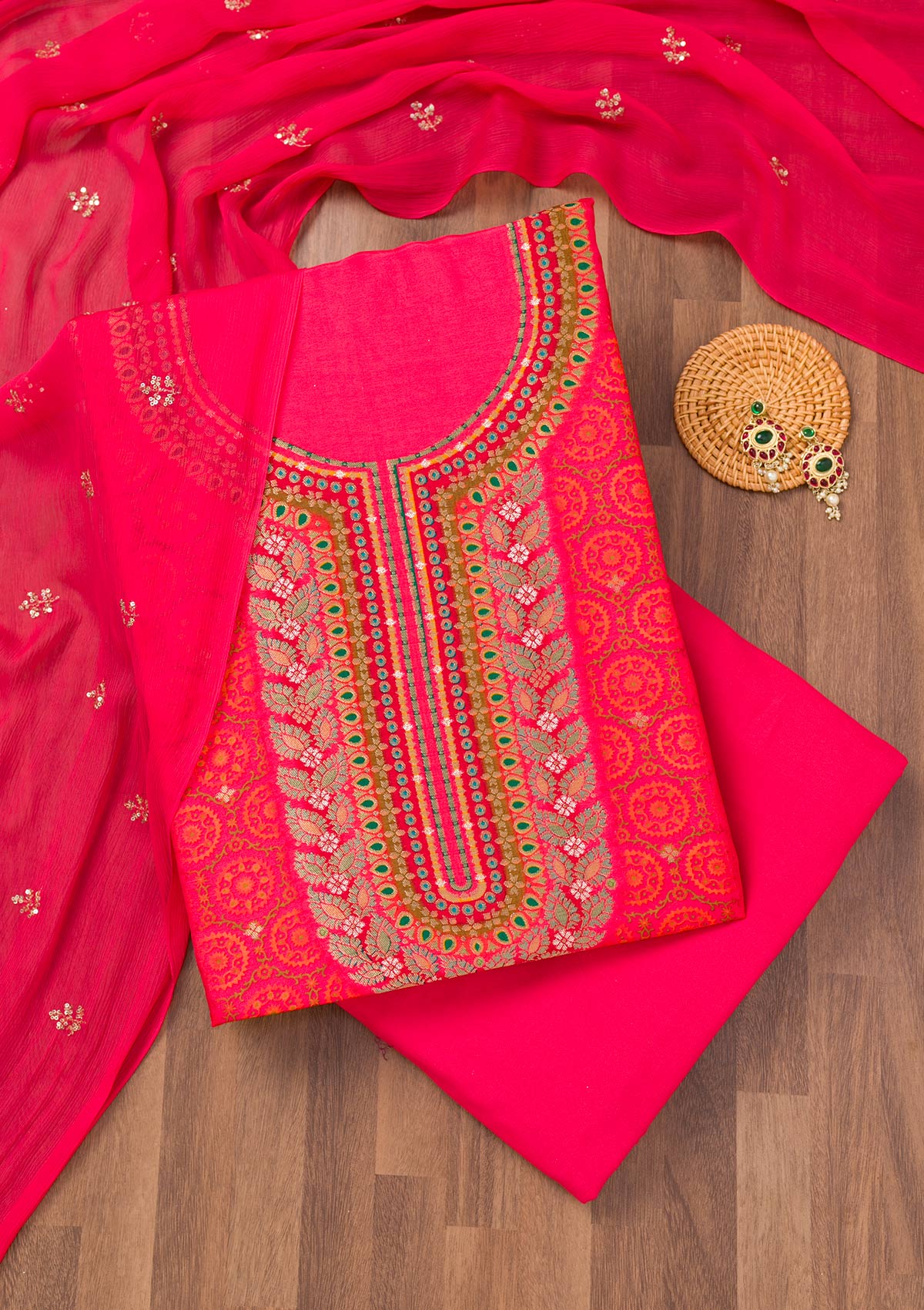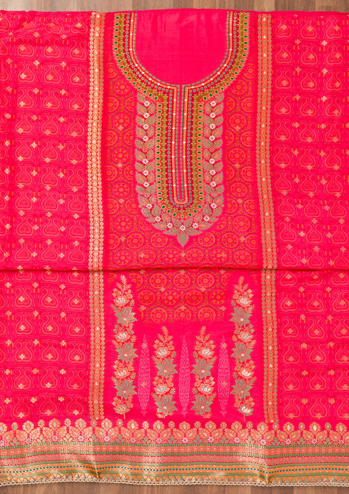 Rani Pink Zariwork Semi Crepe Unstitched Salwar Suit