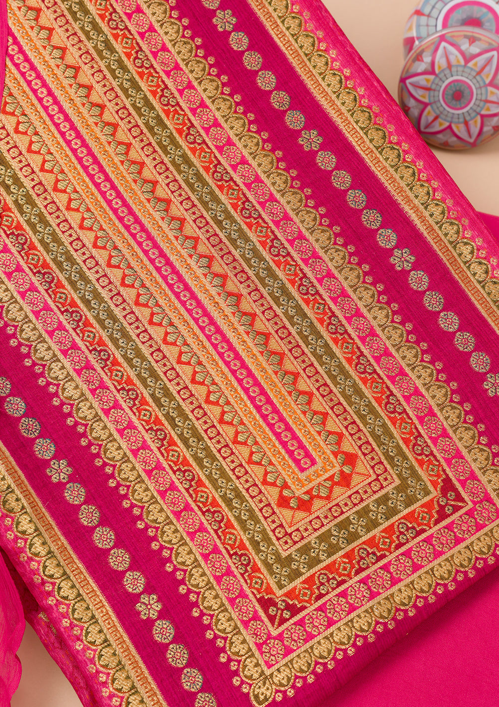 Rani Pink Zariwork Semi Crepe Unstitched Salwar Suit