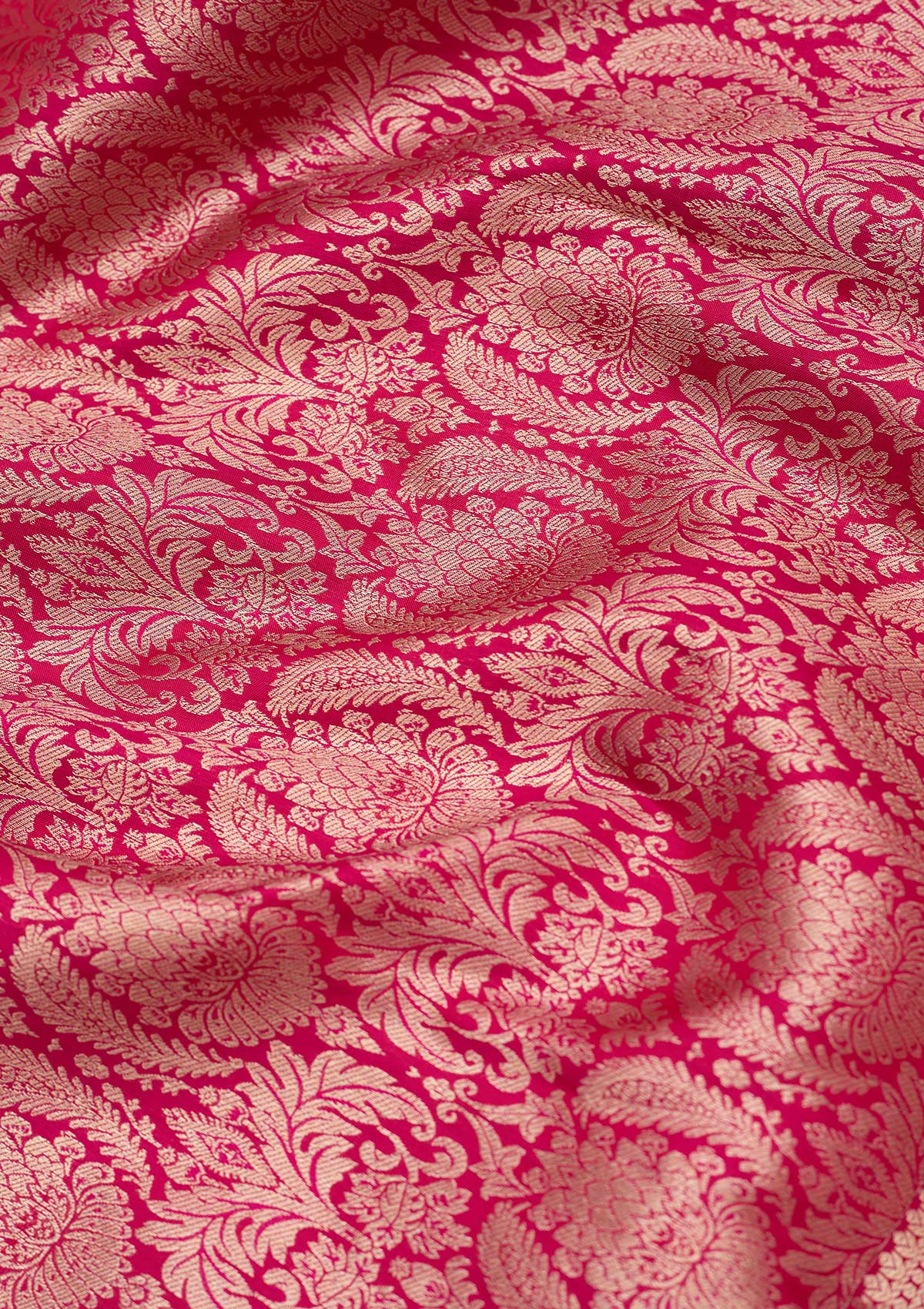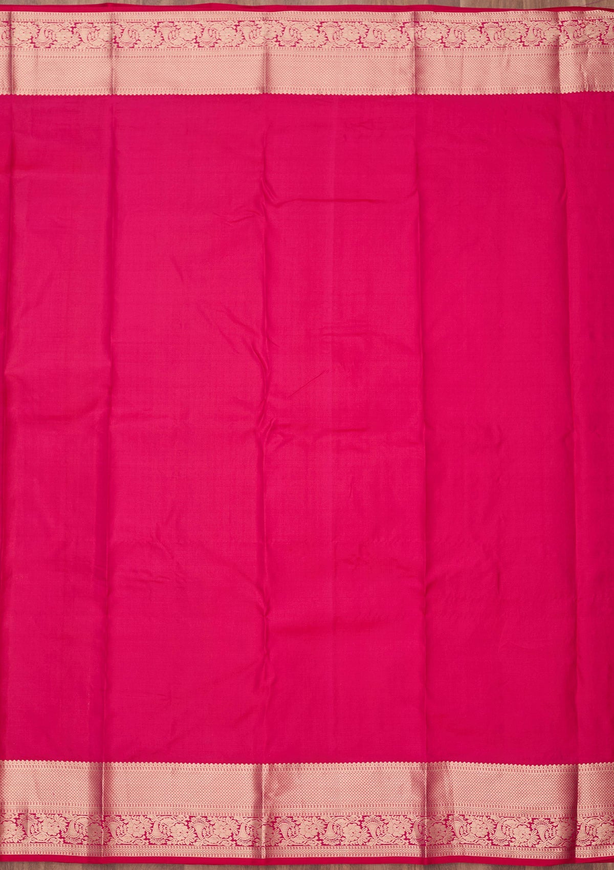 Rani Pink Silk_Saree in Silk fabric. The Silk_Saree is elevated with Zariwork (Silver) embroidery. It comes with an Unstitched blouse. Comes with the Koskii promise of premium quality.