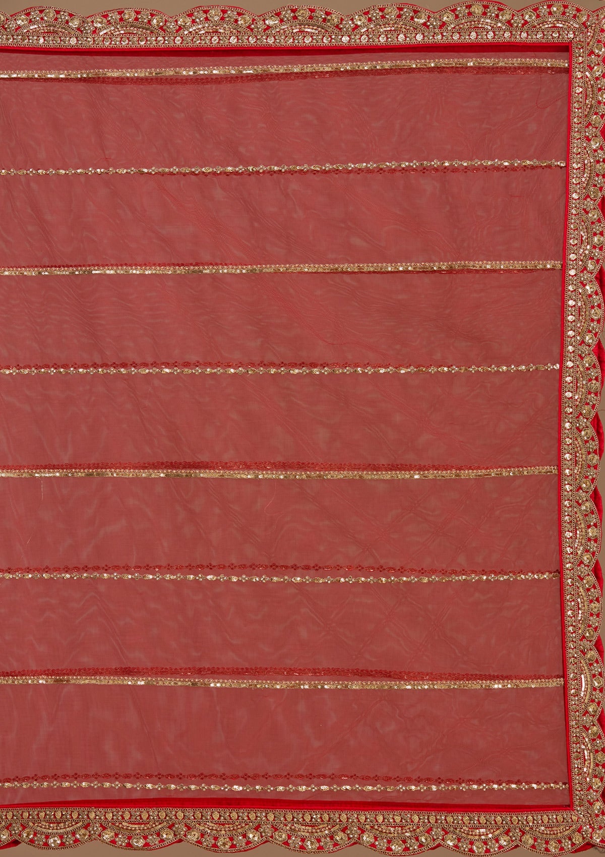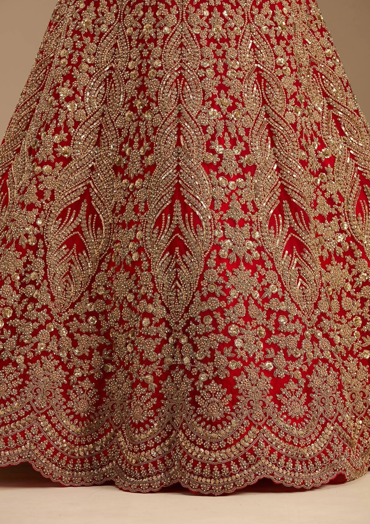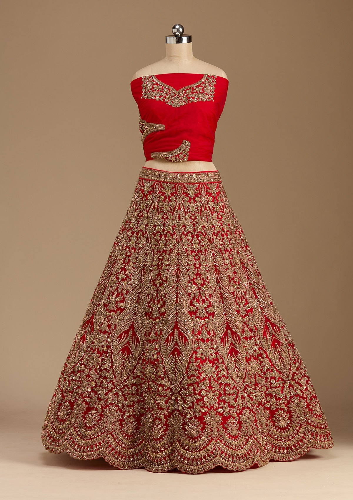 Red Semi-Stitched Lehenga in Net fabric The Lehenga is embellished with Cutdana embroidery Accompanied with an Semi-Stitched blouse and dupatta Comes with the Koskii promise of premium quality.