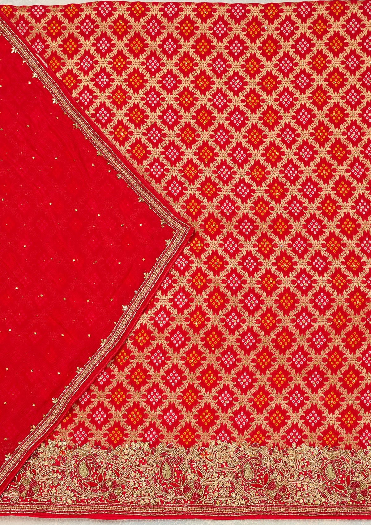 Red Salwar Suit in Georgette fabric. The Salwar Suit is embellished with Stonework (Silver) embroidery. Accompanied with a bottom and dupatta. Comes with the Koskii promise of premium quality.
