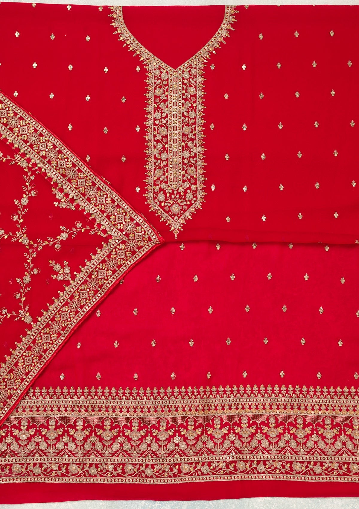 Red Threadwork Georgette Unstitched Salwar Suit