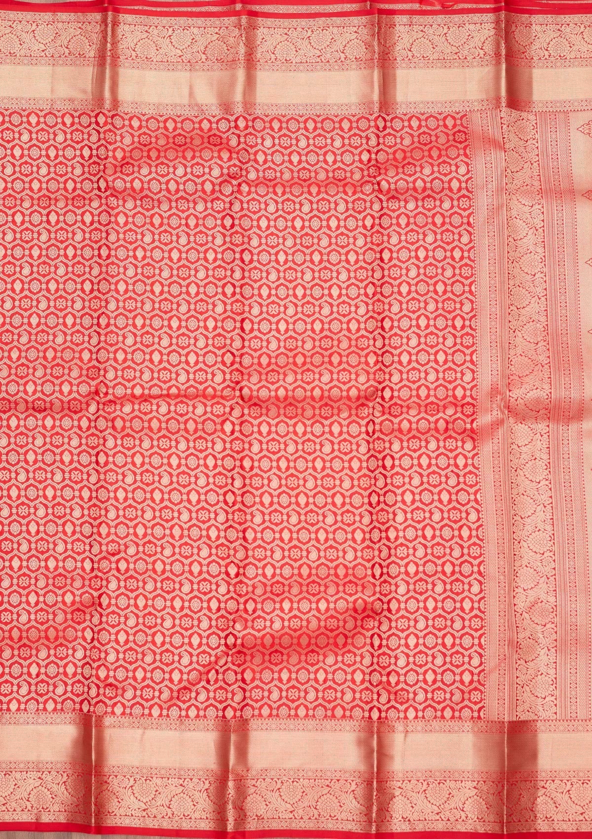 Red Silk_Saree in Silk fabric. The Silk_Saree is elevated with Zariwork (Gold) embroidery. It comes with an Unstitched blouse. Comes with the Koskii promise of premium quality.