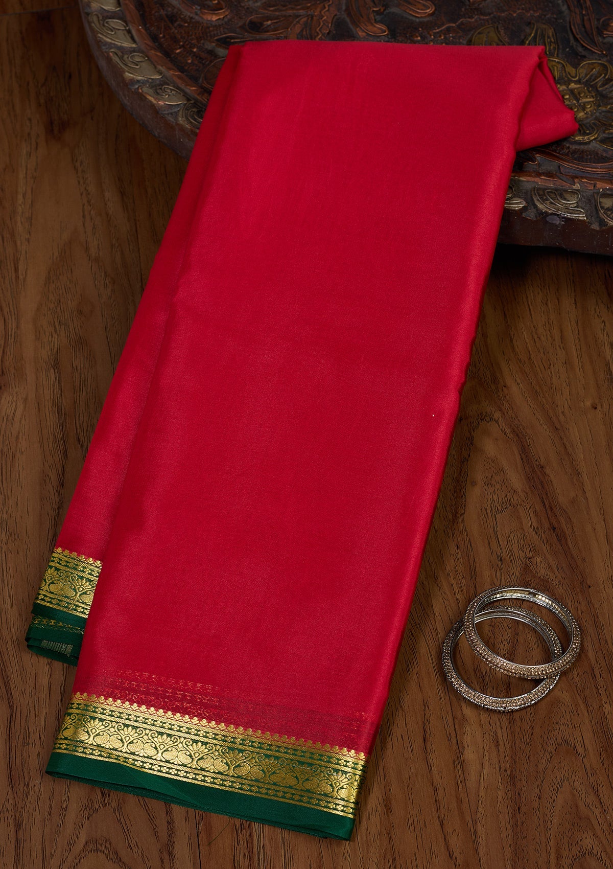 Red Silk Saree in Pure Crepe fabric. The Silk Saree is elevated with Zariwork embroidery. It comes with an Unstitched blouse. Comes with the Koskii promise of premium quality.