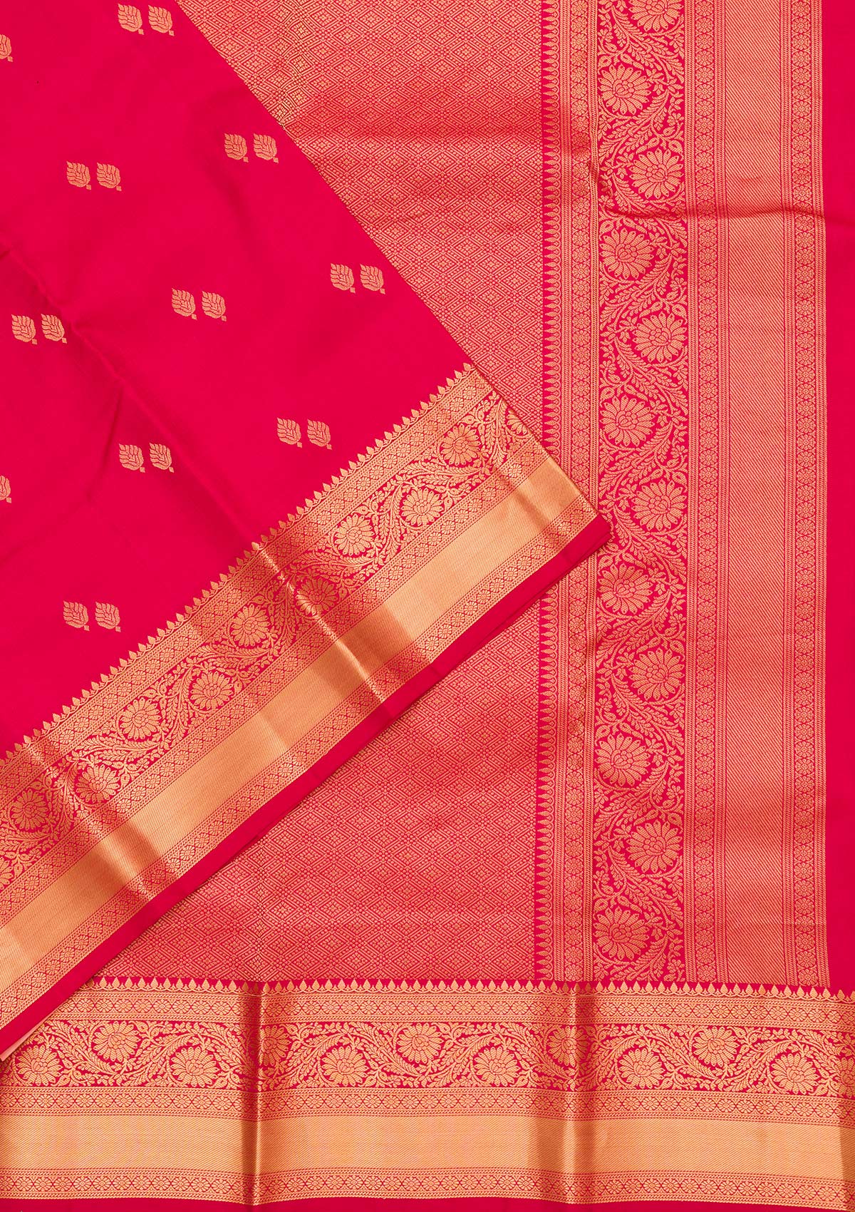 Red Silk Saree in Pure Silk fabric. The Silk Saree is elevated with Zariwork embroidery. It comes with an Unstitched blouse. Comes with the Koskii promise of premium quality.
