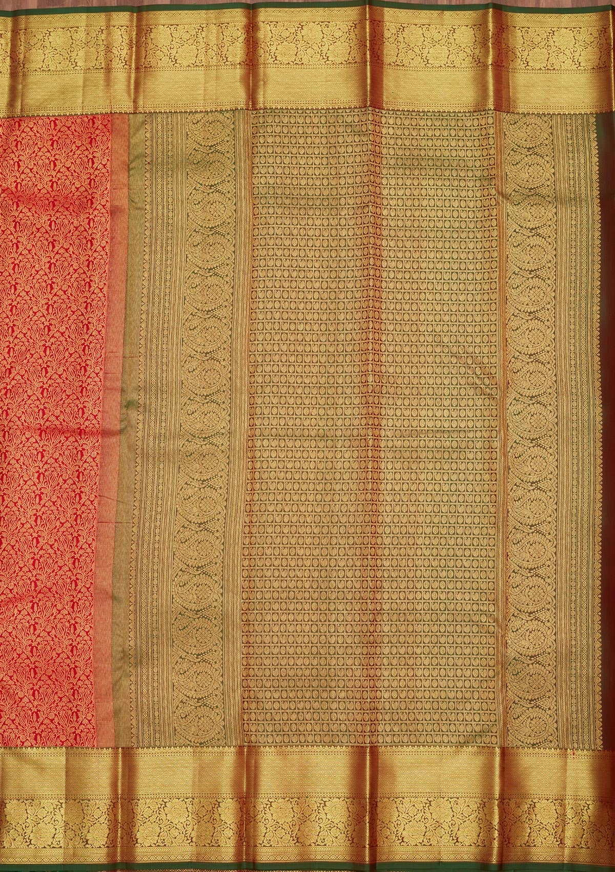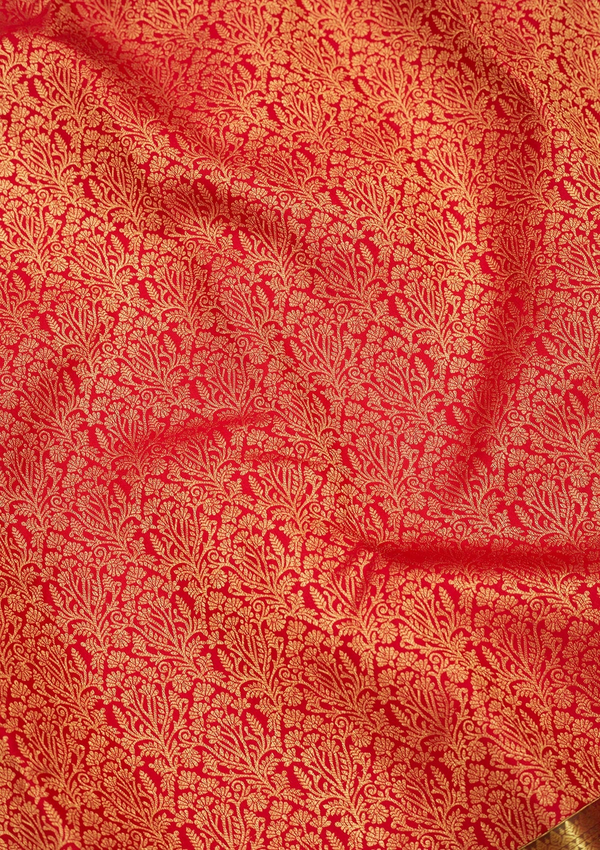 Red Silk Saree in Pure Silk fabric The Silk Saree is elevated with Zariwork embroidery It comes with an Unstitched blouse Comes with the Koskii promise of premium quality.