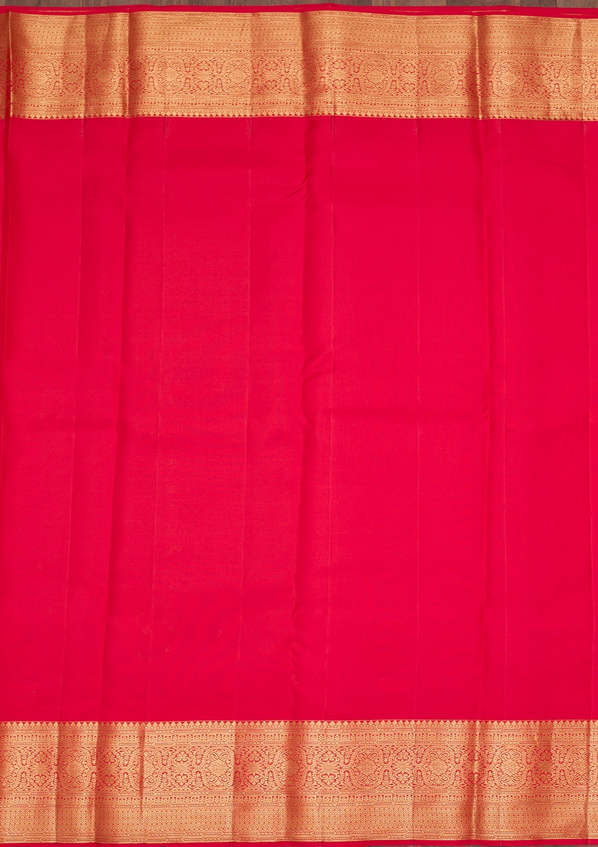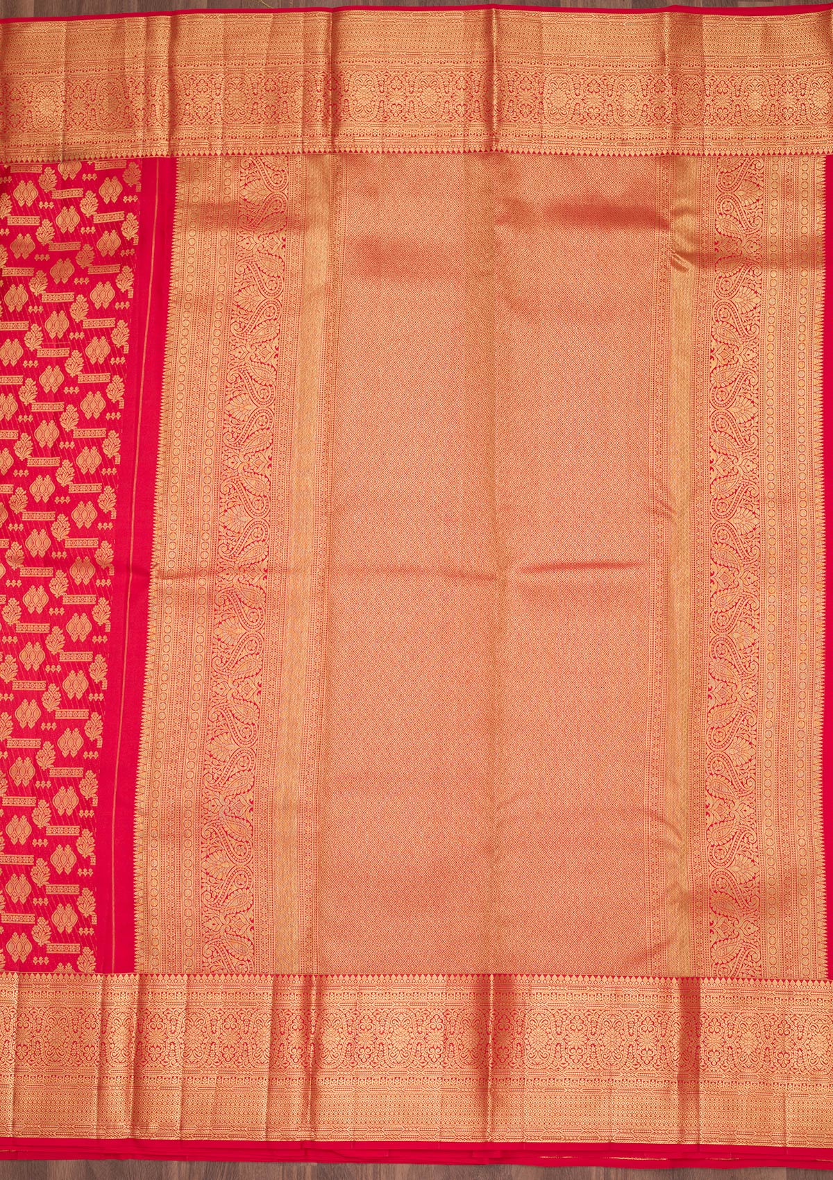 Red Silk Saree in Pure Silk fabric The Silk Saree is elevated with Zariwork embroidery It comes with an Unstitched blouse Comes with the Koskii promise of premium quality.