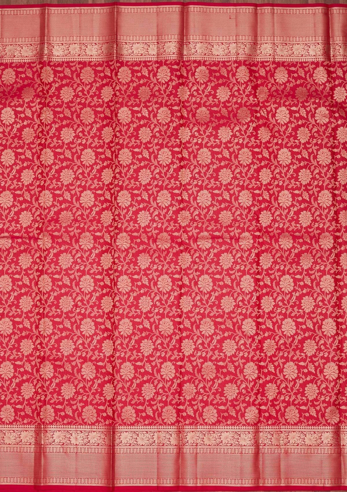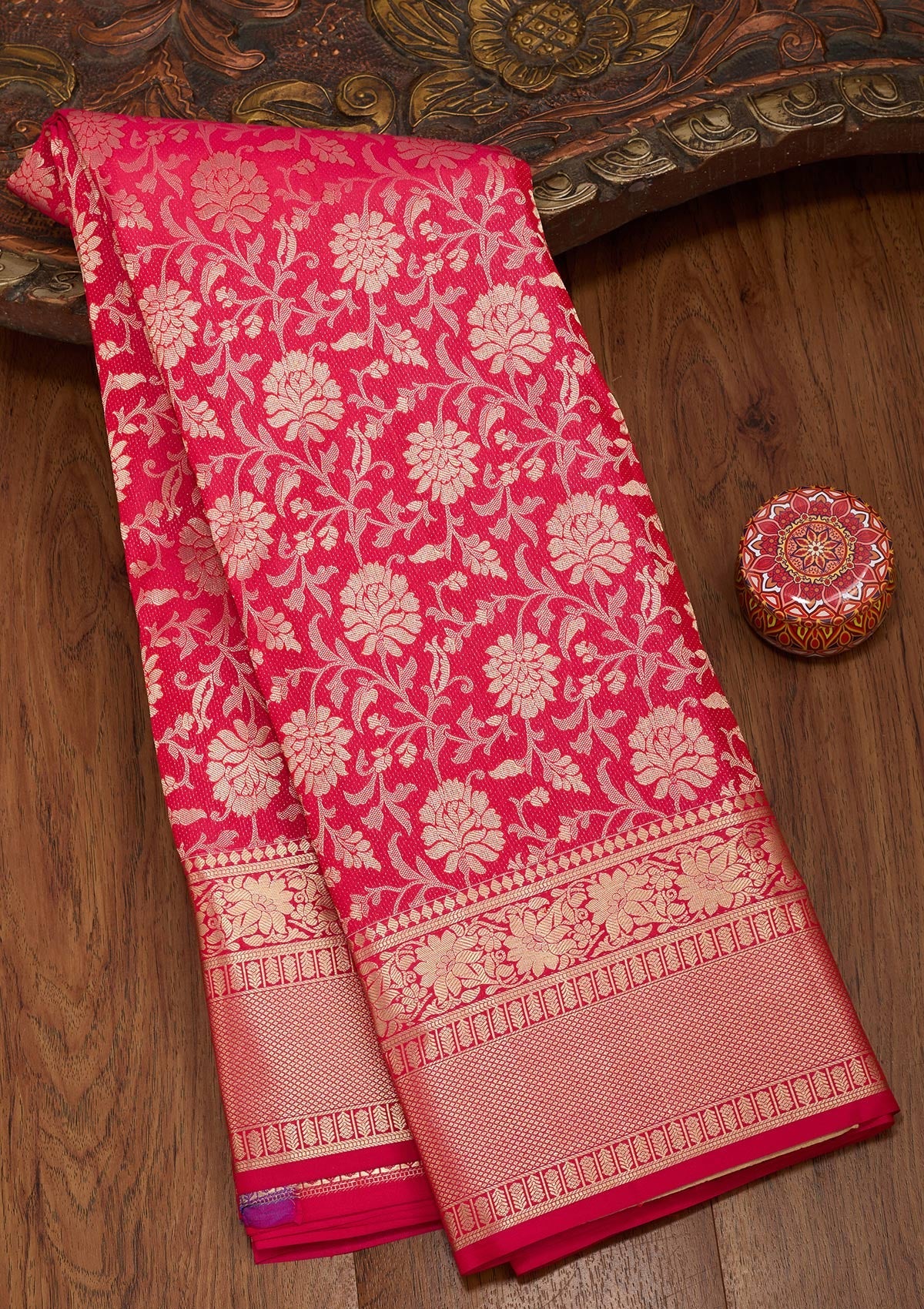 Red Silk_Saree in Pure Silk fabric. The Silk_Saree is elevated with Zariwork embroidery. It comes with an Unstitched blouse. Comes with the Koskii promise of premium quality.
