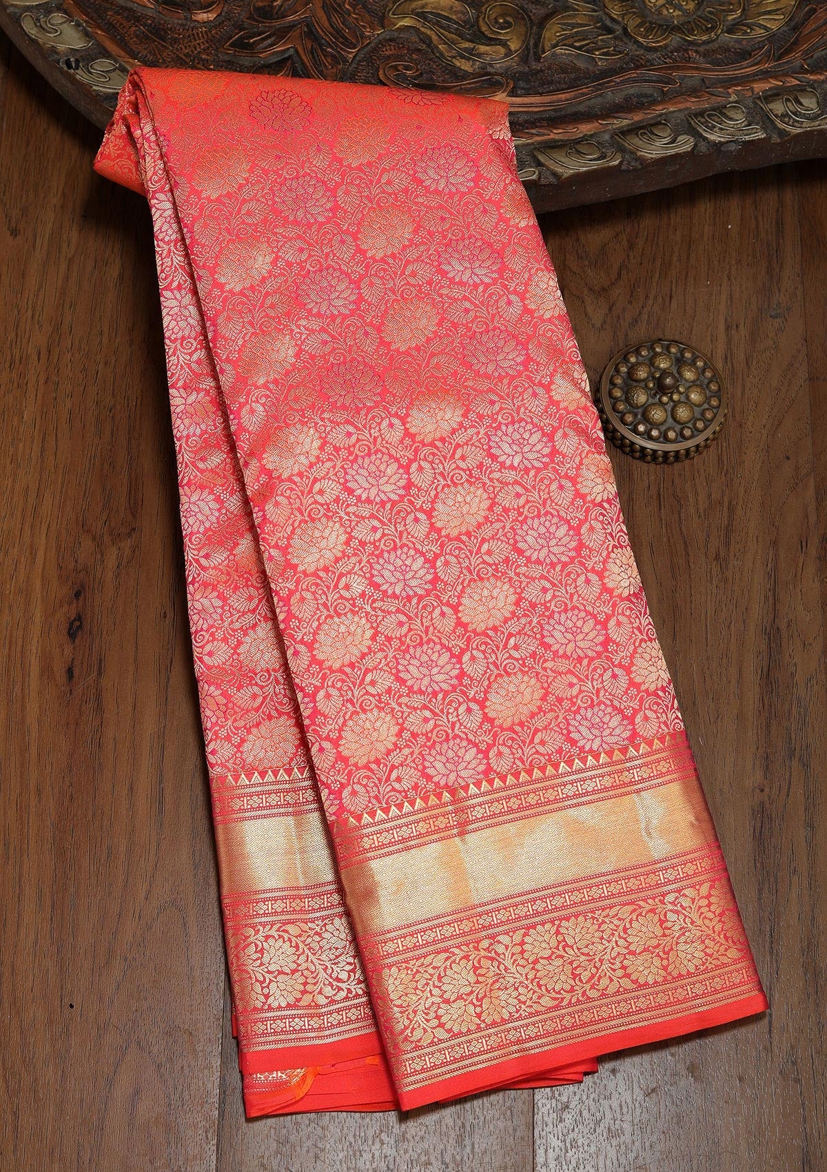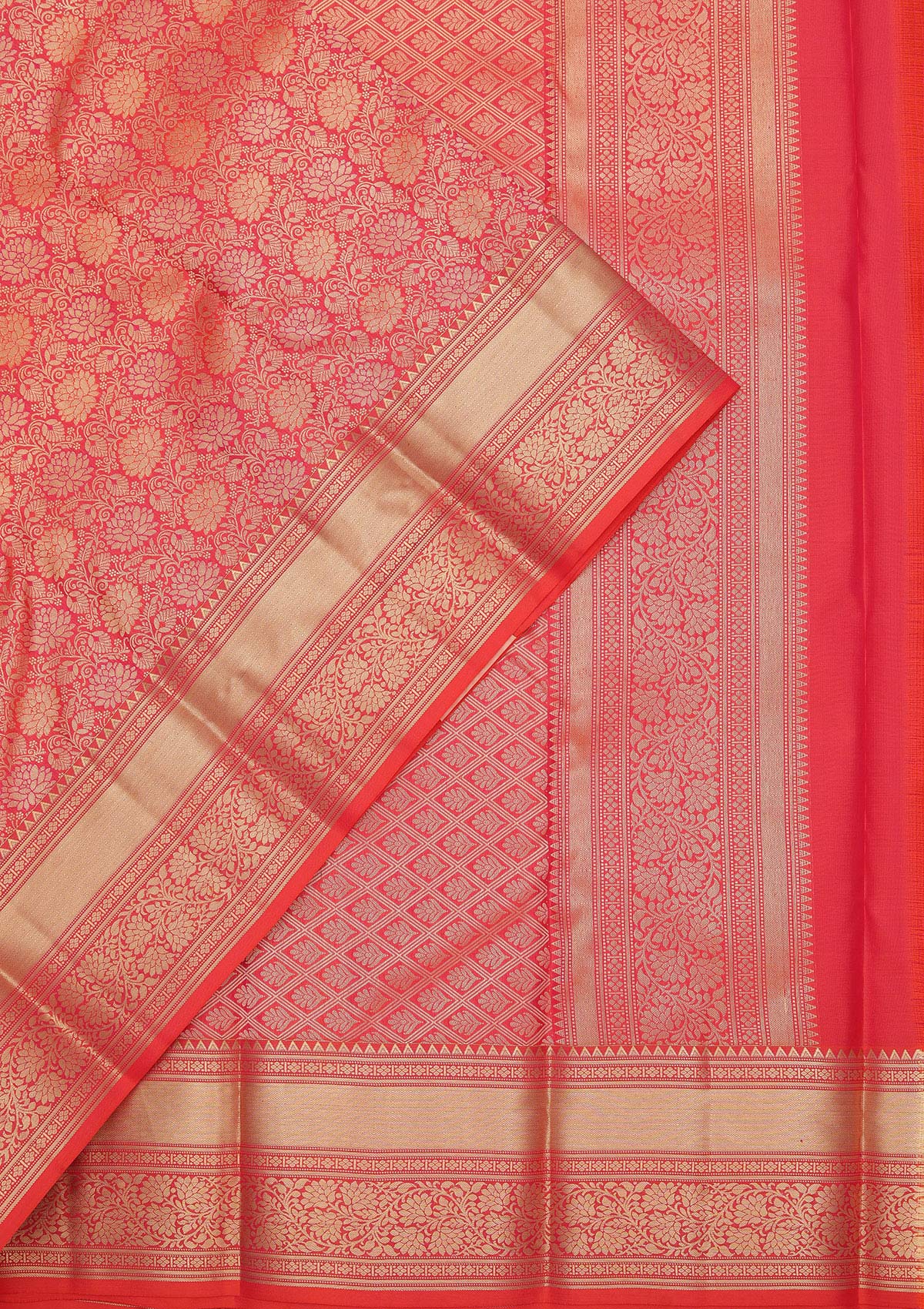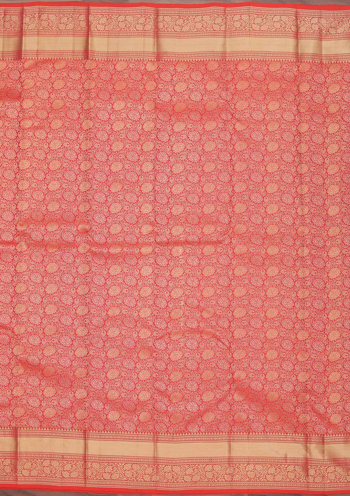 Red Silk Saree in Pure Silk fabric. The Silk Saree is elevated with Zariwork embroidery. It comes with an Unstitched blouse. Comes with the Koskii promise of premium quality.