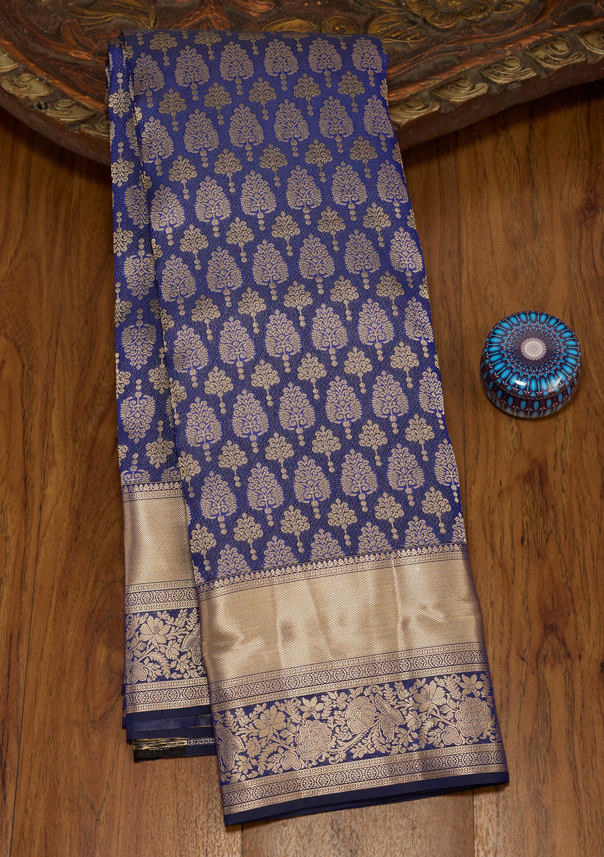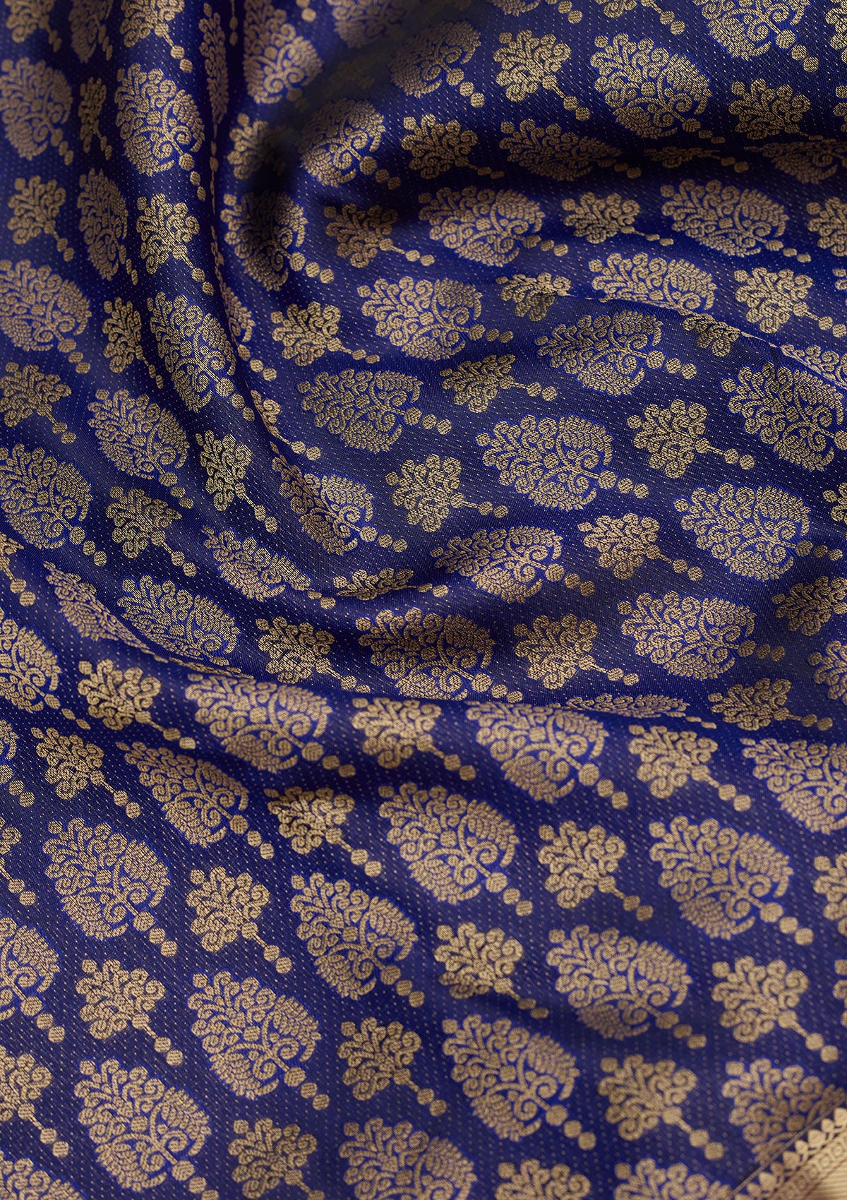Royal Blue Zariwork (Gold) Silk Silk Saree