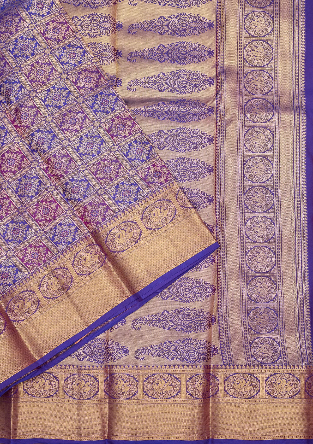 Royal Blue Zariwork (Gold) Silk Silk Saree