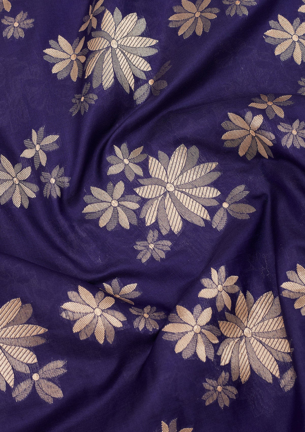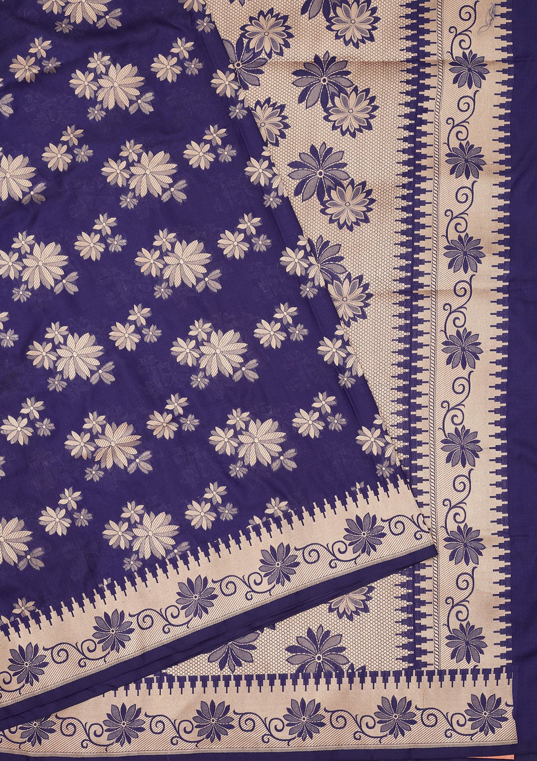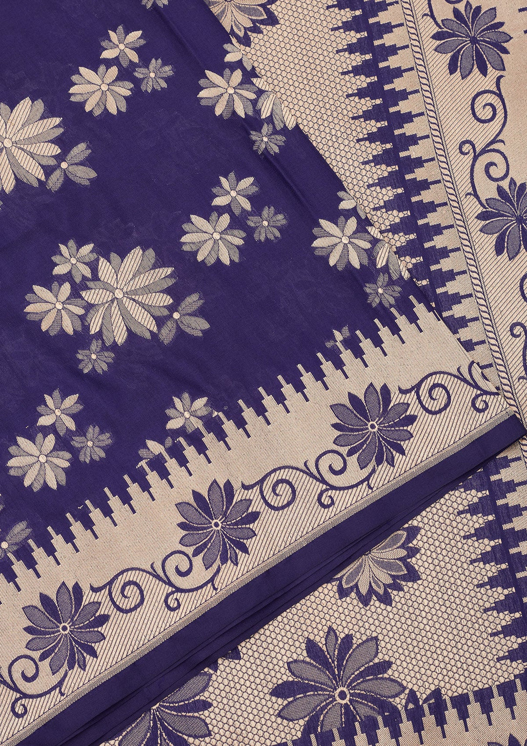 Royal Blue Saree in Pure Silk fabric The Saree is elevated with Zariwork embroidery It comes with an Unstitched blouse Comes with the Koskii promise of premium quality.