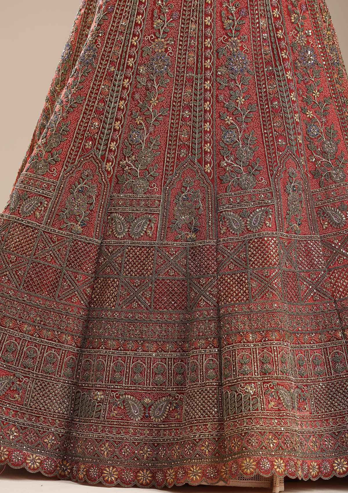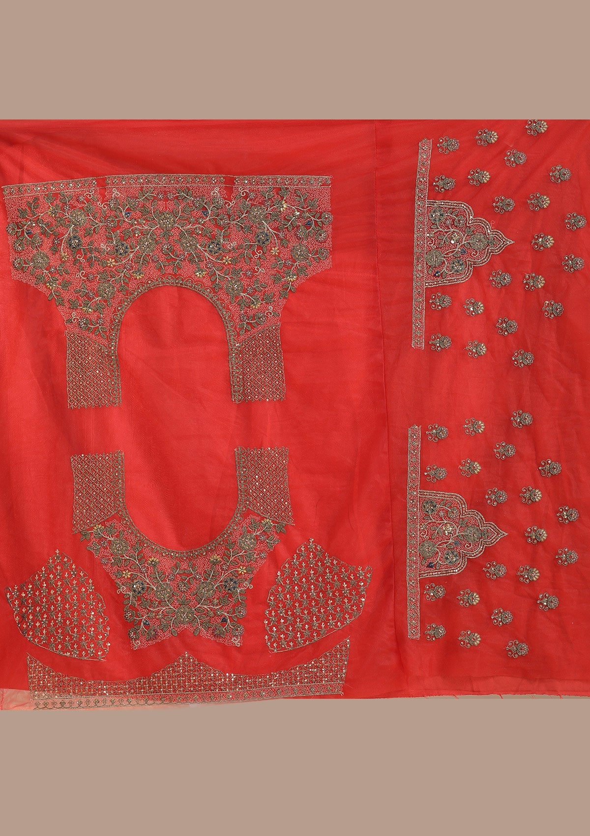 Rust Semi-Stitched Lehenga in Net fabric. The Lehenga is embellished with Cording embroidery. Accompanied with an Semi-Stitched blouse and dupatta. Comes with the Koskii promise of premium quality.