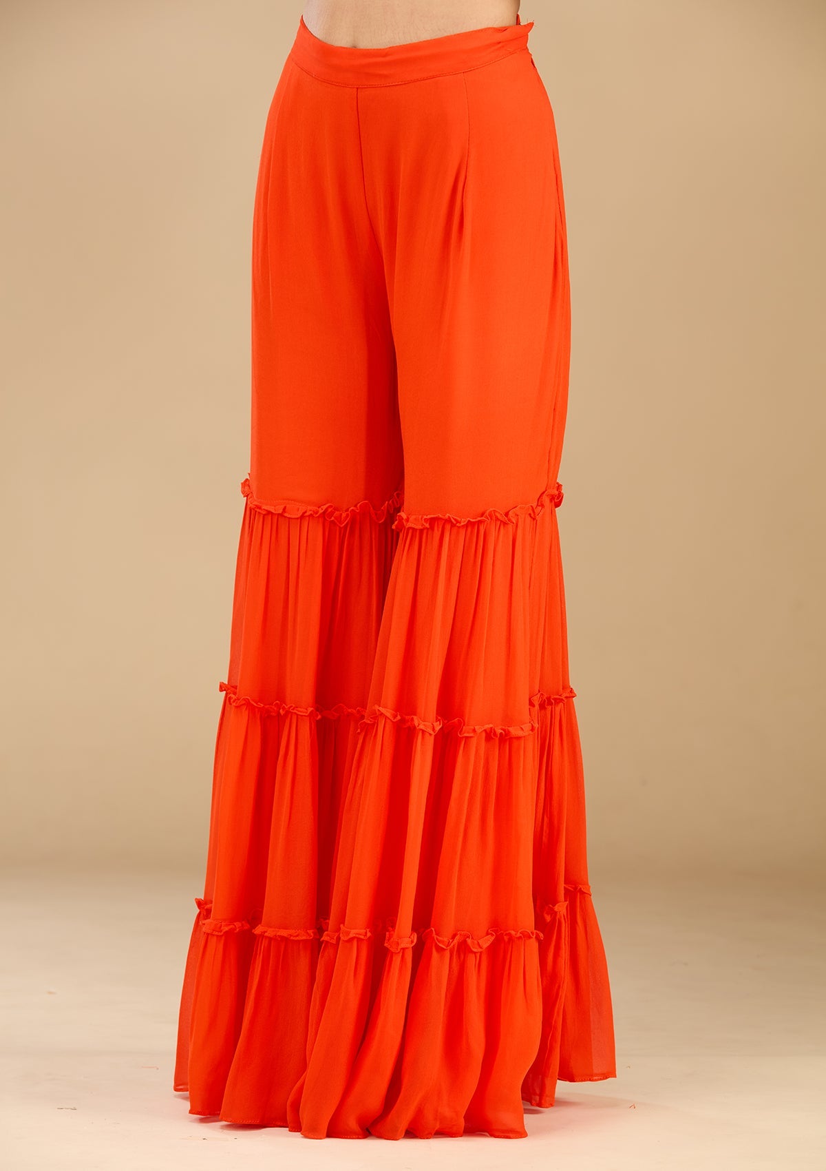 Rust Salwar_RM in Georgette fabric. The Salwar_RM is embellished with Pearlwork embroidery. Accompanied with a bottom and dupatta. Comes with the Koskii promise of premium quality.